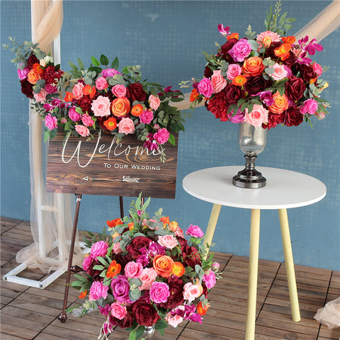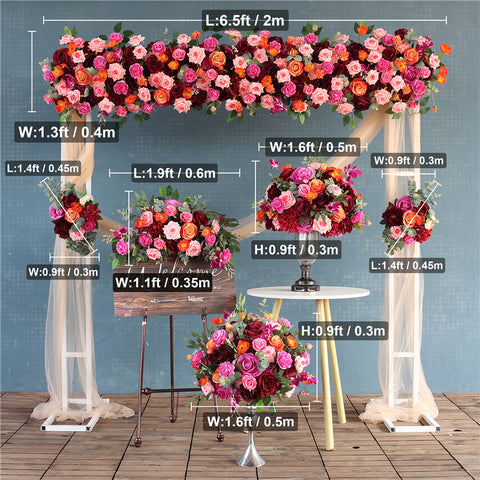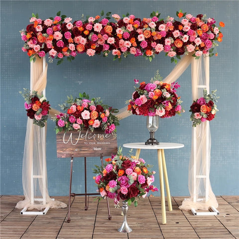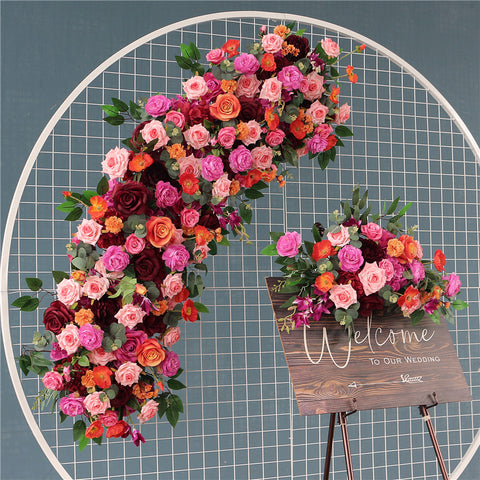 Malhela Ruĝa Oranĝa Flora Aranĝo Geedziĝa Evento Arko Penda Floro Geedziĝa Propono Festo Fona Dekoracio Agordu