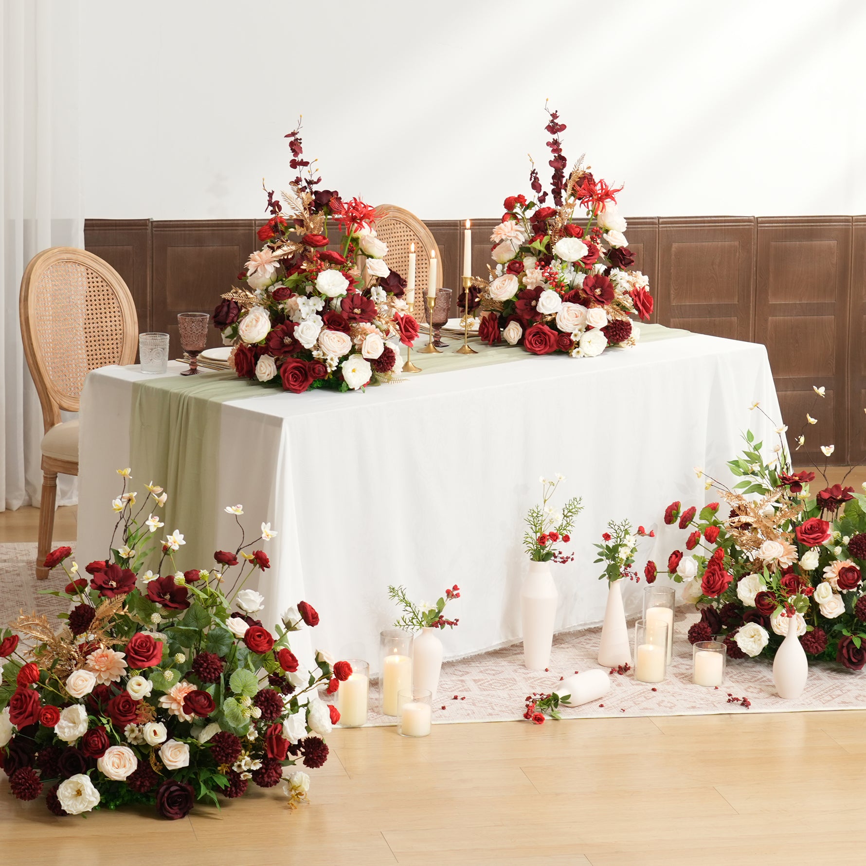 A9060 Artificial White Red Flower Gold Leaves Table Centerpiece Wedding Event Supplies