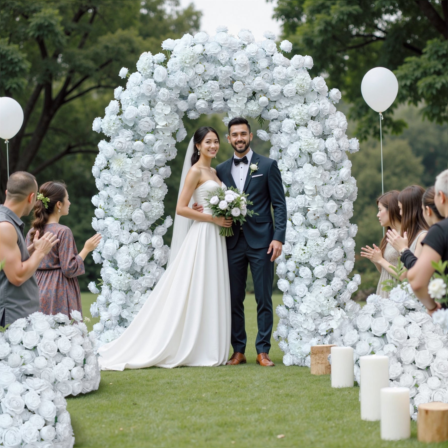 A875601 Pure White Series Floral Row Arrangement Decor Wedding Arch Frame
