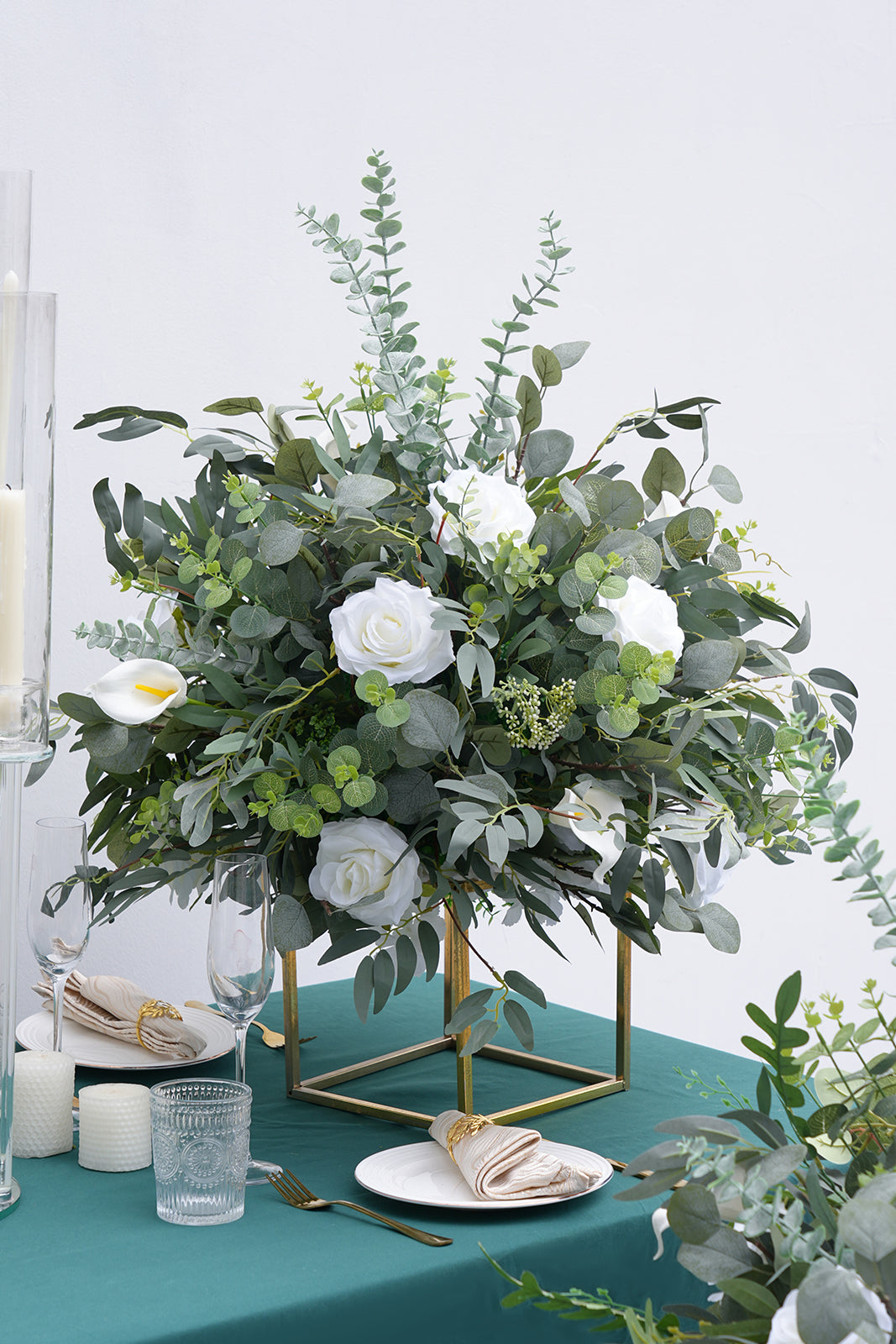 80/70/60/50cm Geedziĝa Tablo Centra Pilko Blanka Rozo Orkideo Hortensia Flora Aranĝo