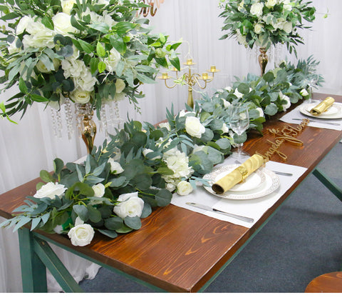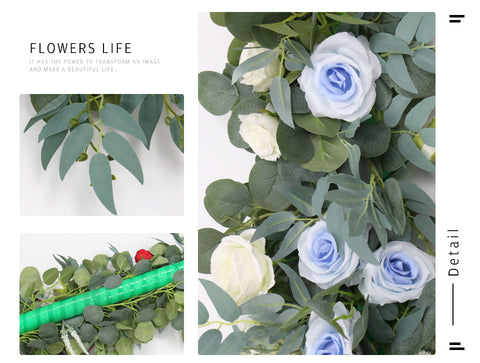 Rozo-Eŭkalipto-Plantoj Rotan Tablo Floro Artefarita Floro Vico Muro Pendu Festo Geedziĝa Arko Flora Aranĝo Hejma Dekoracio A101