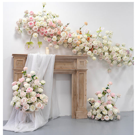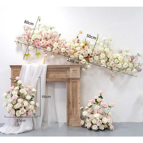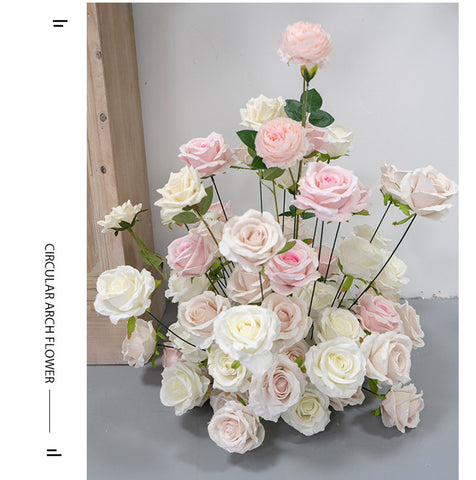 Rozkolora Geedziĝa Scena Fono Dekoracio Blanka Artefarita Flora Vico Aranĝo Mura Pendu Flora Voja Plumbo Floroj Pilkaj Festaj Apogoj