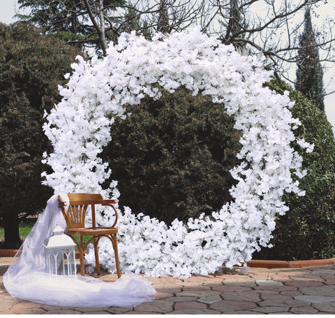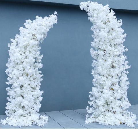 Blanka Ĉerizfloro Kun Kora Breto Luno Formo Geedziĝa Fono Flora Pordo Festa Scenejo Flora A016