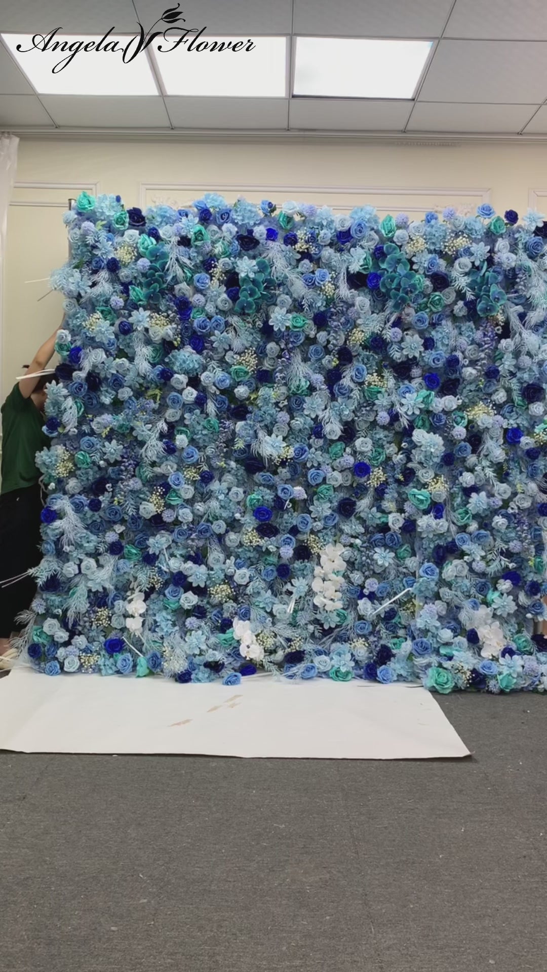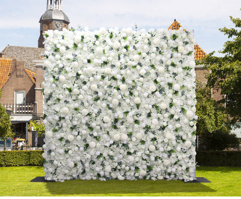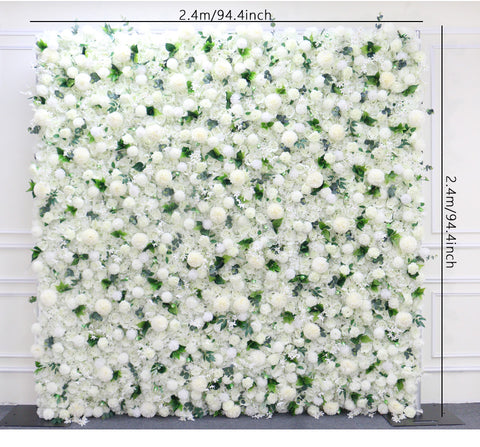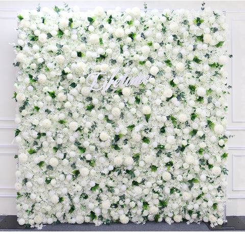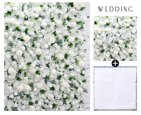 5D Blanka Dandelion Hortensia Rozo Verdaj Folioj Ŝtofo Rolling Up Flora Muro Aranĝo Geedziĝa Fono Kurteno Pendu Dekoracio A120