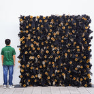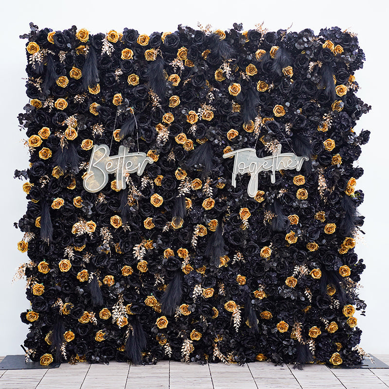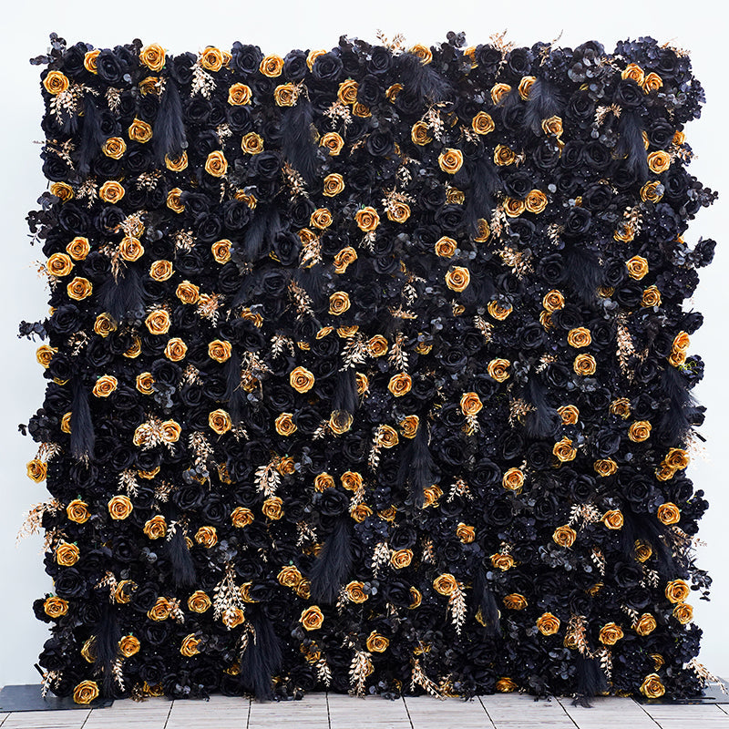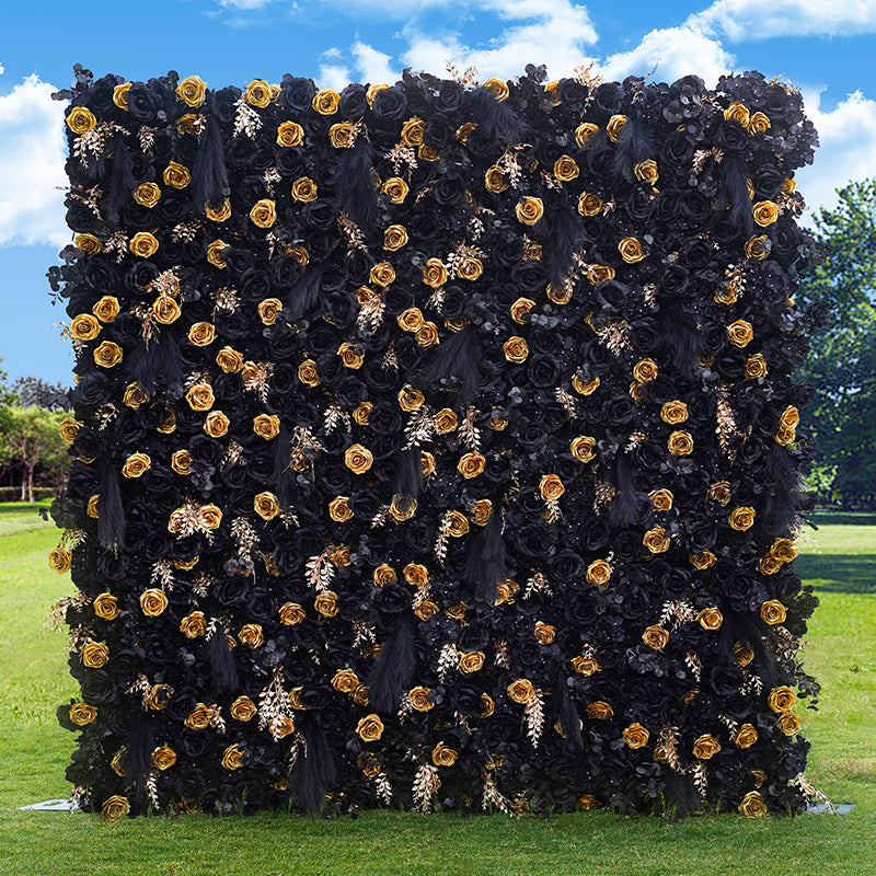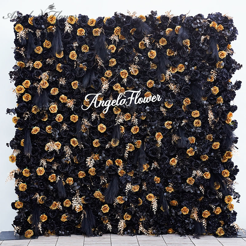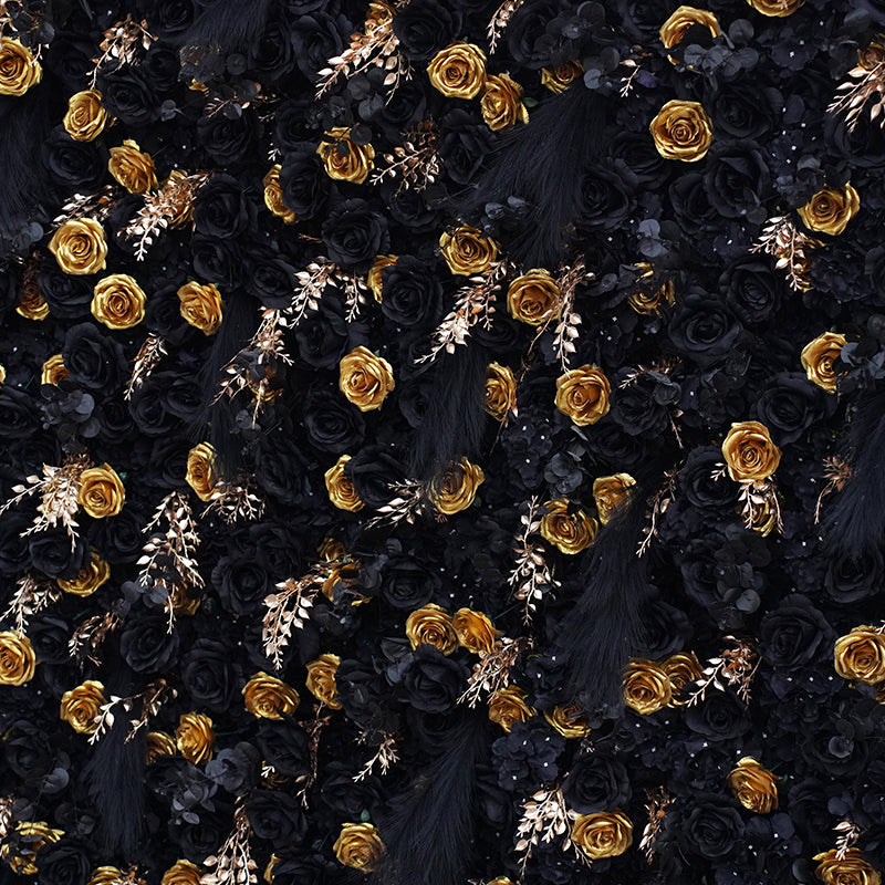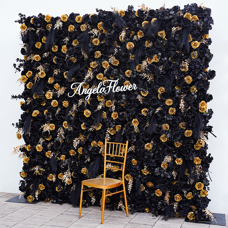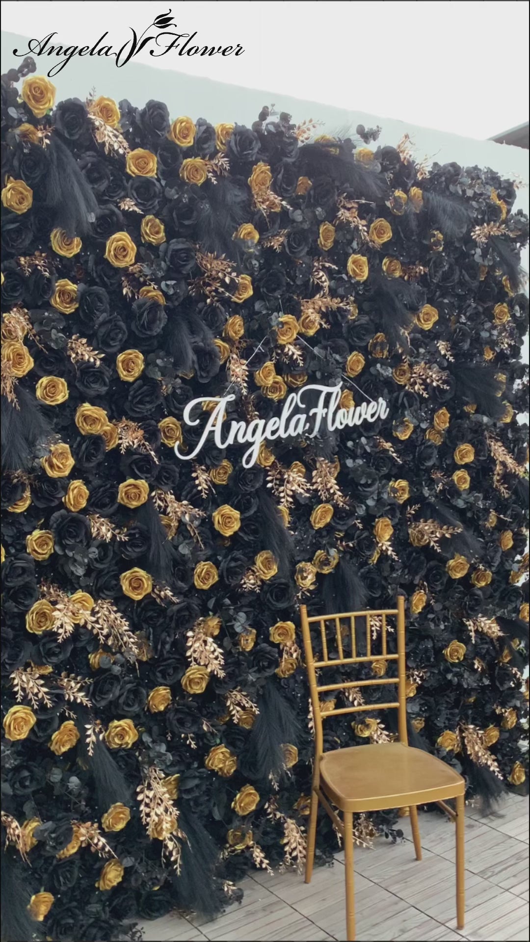 A8258 Black Gold Rose Feather Curtain Cloth Flower Wall Wedding Backdrop Decor
