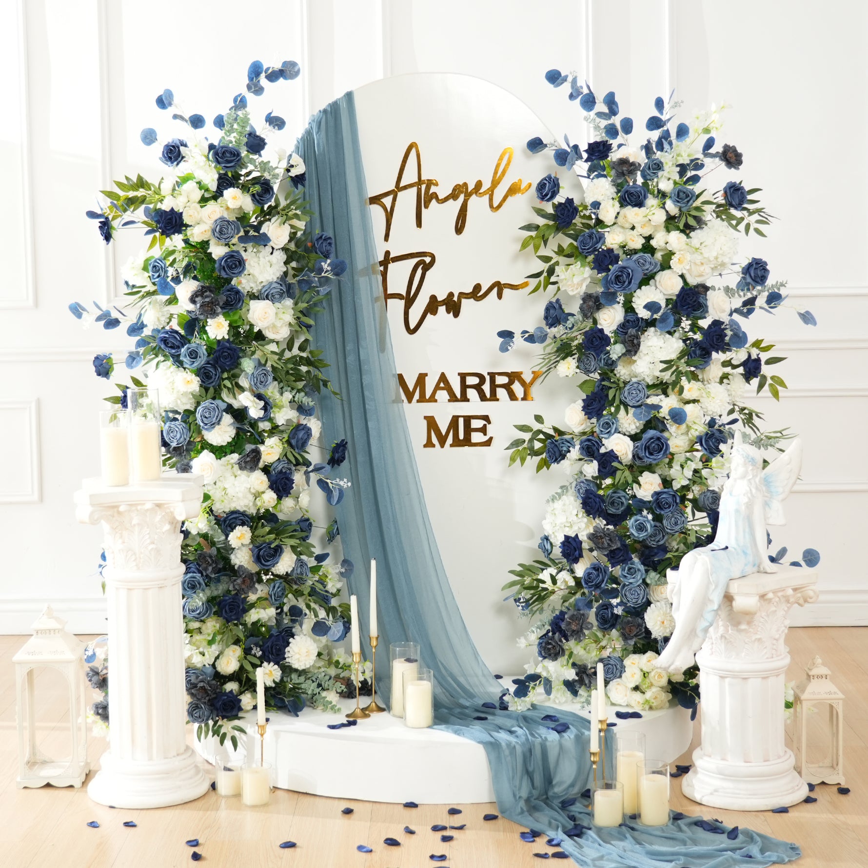 A9032 Blue White Greenery Flower Arrangement KT Board Event Backdrop Party Supplies