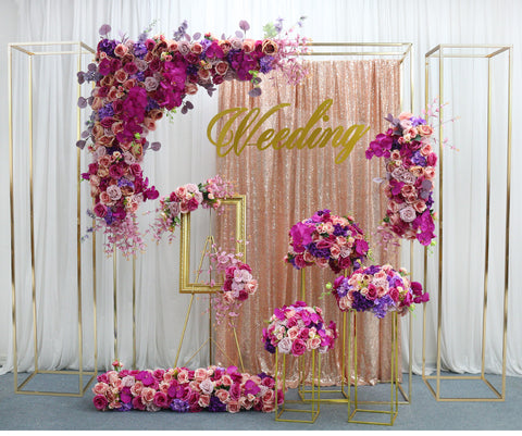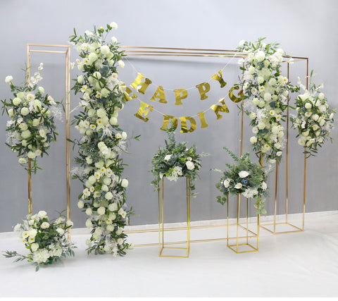 Diversaj Orumita Shef Geedziĝa Fono Arko Apogiloj Kvadrata Ekrano Ronda Ronda Floro Stand Geometria Voja Plumbo Kadro Festoprovizo