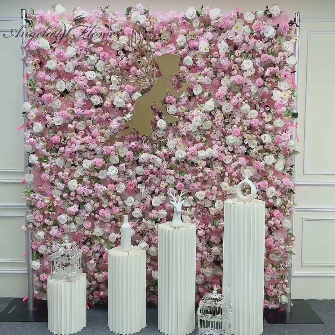Blanka Rozo Rozkolora Pompo 5D Ŝtofo Flora Muro Geedziĝa Fono Dekoraciaj Apogoj