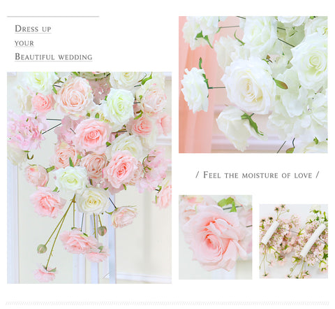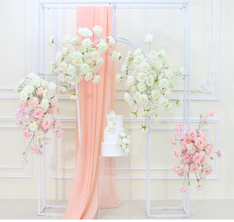 Blanka Roza Rozo Peonio Hortensia Flora Aranĝo Geedziĝa Arko Pendu Flora Vico Kurteno Fono Dekoracio Floroj Eventaj Festo Apogoj A129