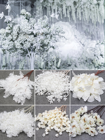 Blanka Serio Artefaritaj Floroj Plantoj Folio DIY Geedziĝa Festo Flora Aranĝo Materialoj Kristnasko Hejma Dekoracio Plasta Bukedo