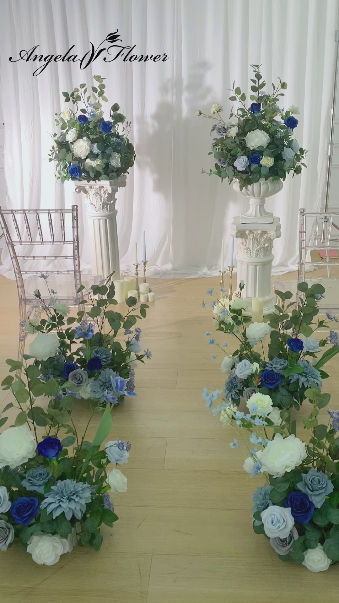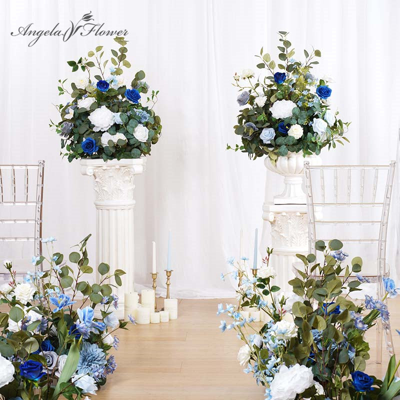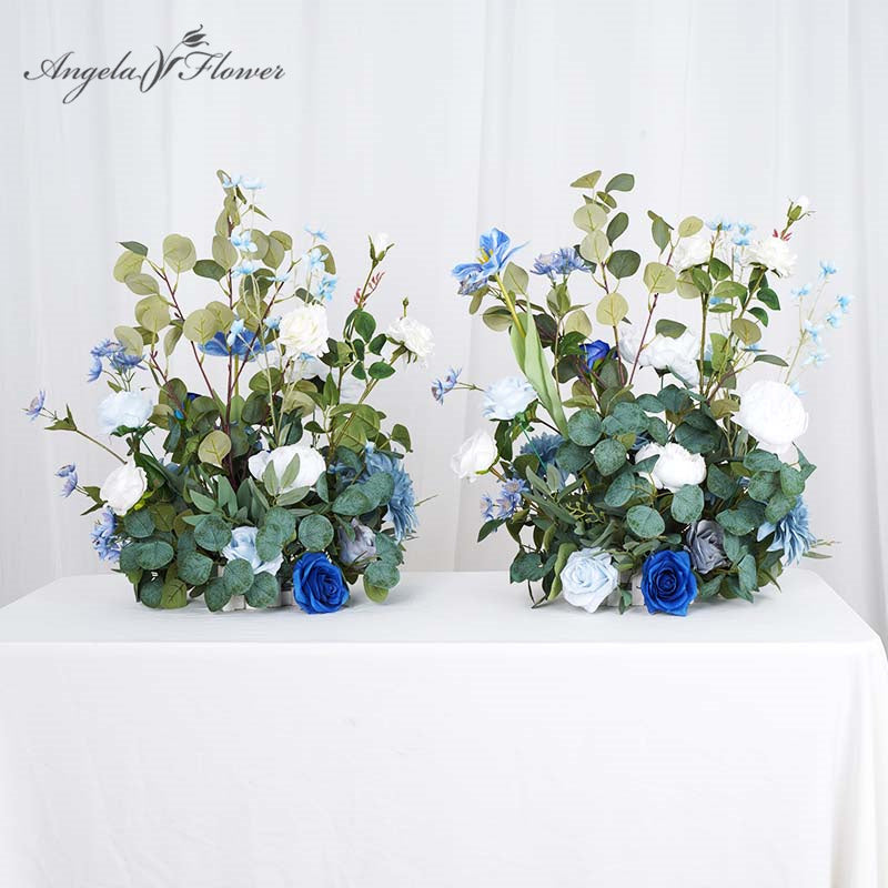 A8634 Blue White Series Eucalyptus Leaves Wedding Floral Arrangement
