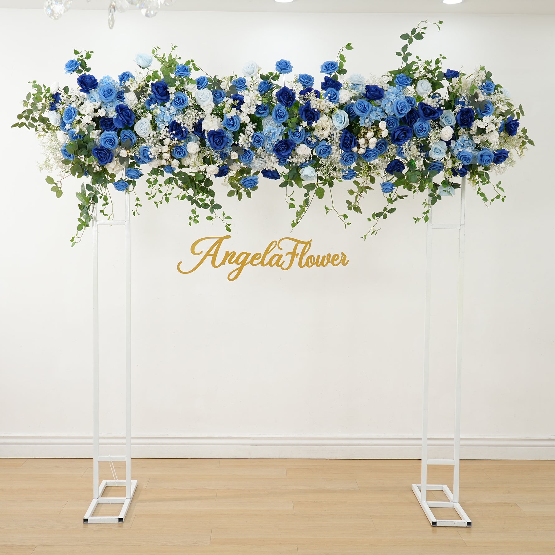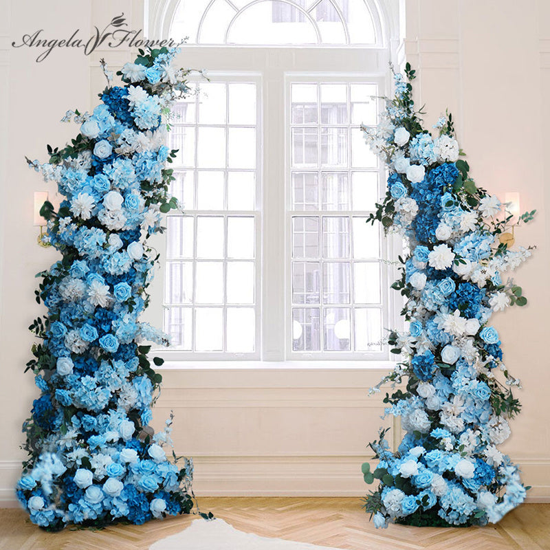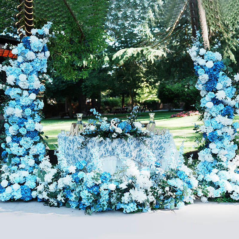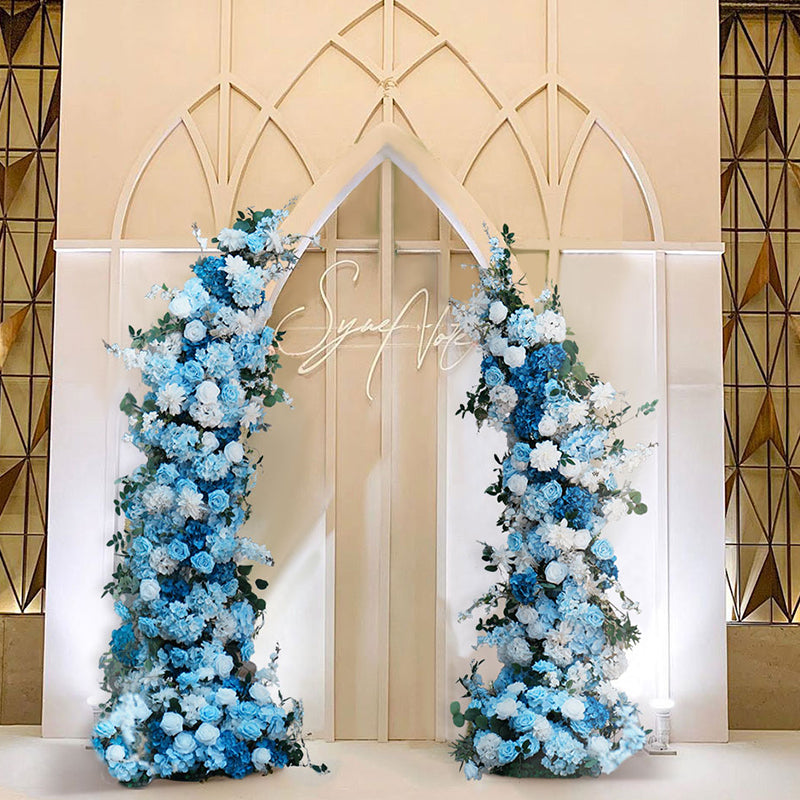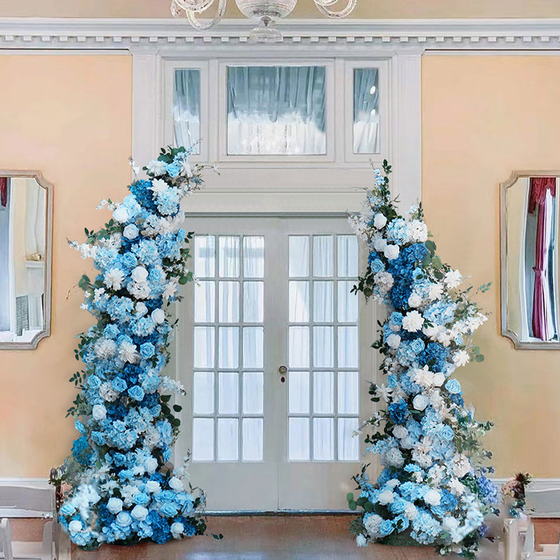A8634 Blue White Series Greenery Flower Row Arrangement Decor Wedding Backdrop Horn Arch