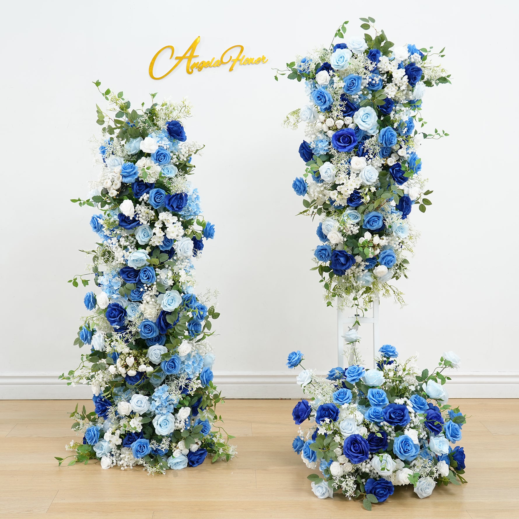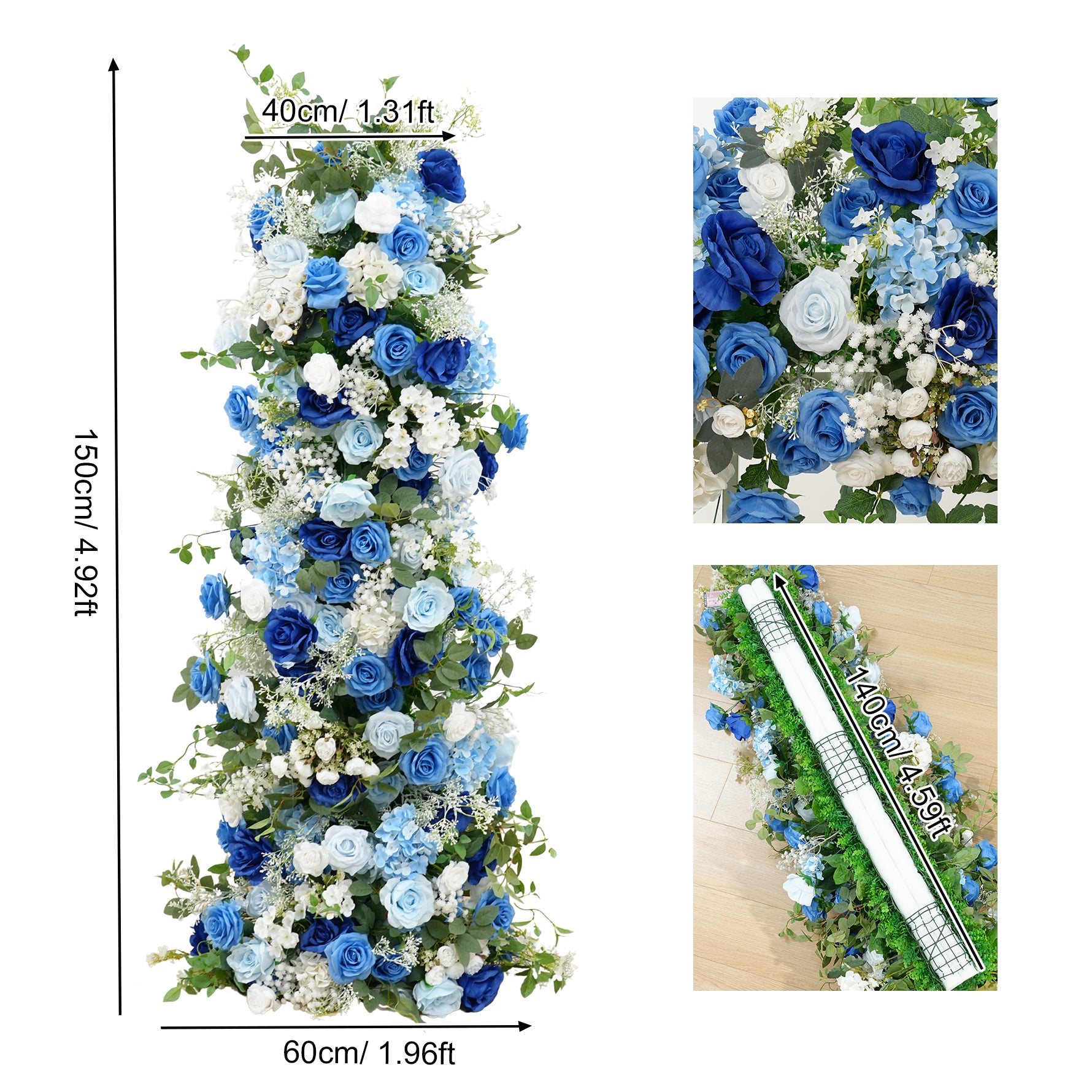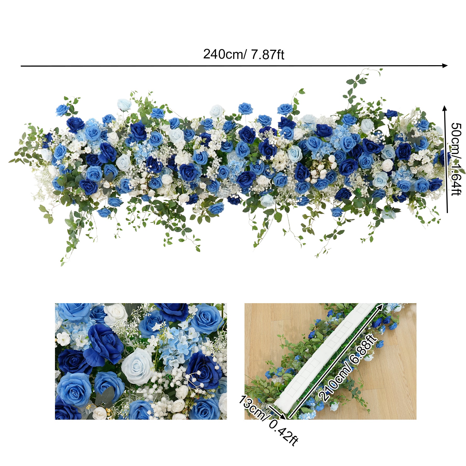 A8634 Blue White Series Greenery Flower Row Arrangement Decor Wedding Backdrop Horn Arch