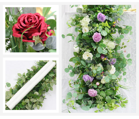 Roza Eŭkalipto Folio Tablokuriloj Floro Geedziĝa Arko Dekoracio Artefarita Floro Vico Aranĝo Eventa Fono Mura Aranĝo A098