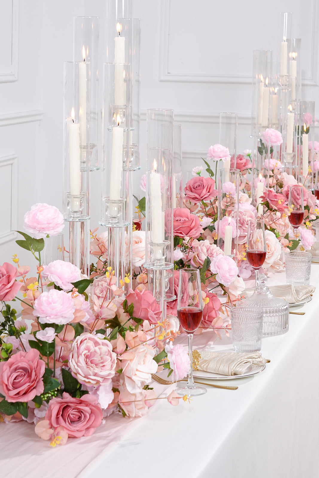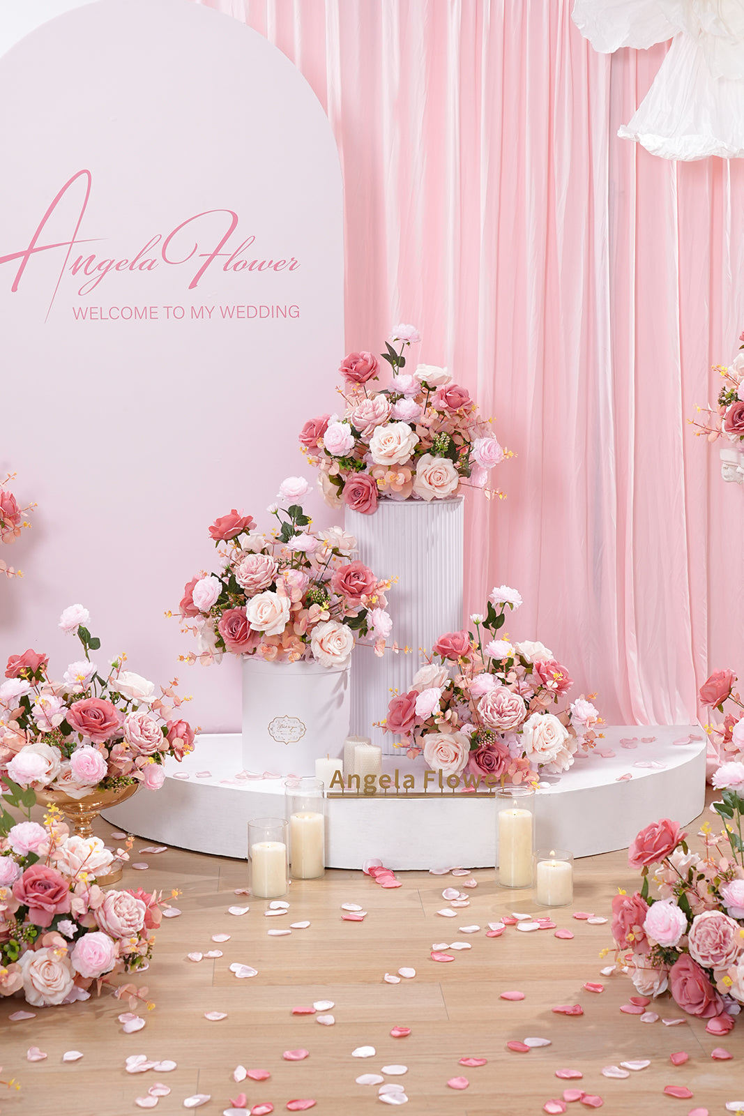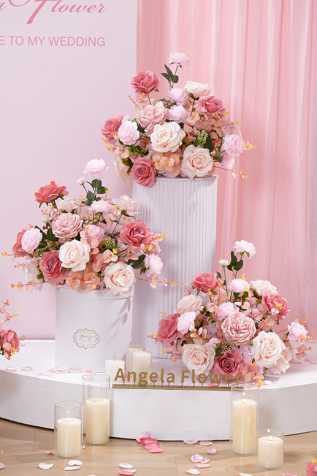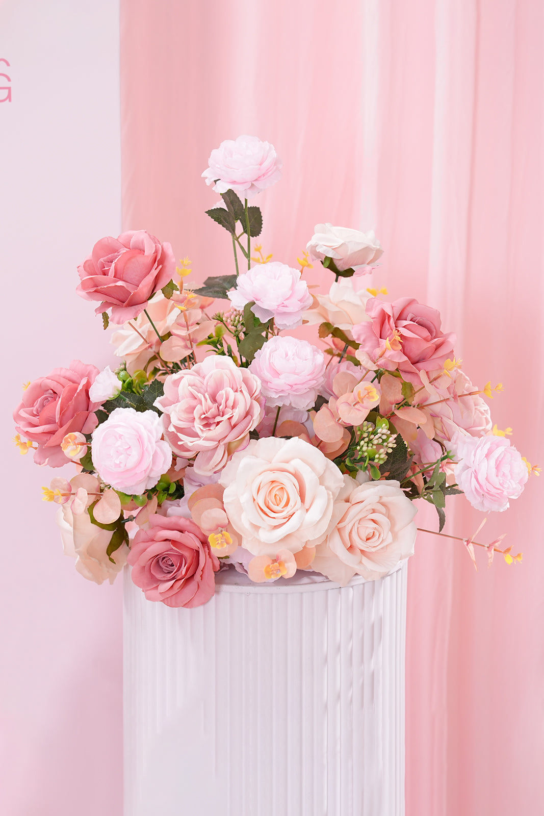 Color Inspiration: The colors of this table flower are inspired by the pink gardens that bloom in the sunlight on spring afternoons. Those sun-kissed flowers carry a light sweetness and intoxicating fragrance. Gentle pink is the color of first love, a young girl's dream, and a vision of a better future. The daintiness of roses, the fullness of hydrangeas, and the atmosphere of peonies are all given a whole new life by this gentle pink color, conveying the message of romance, happiness and sweetness.