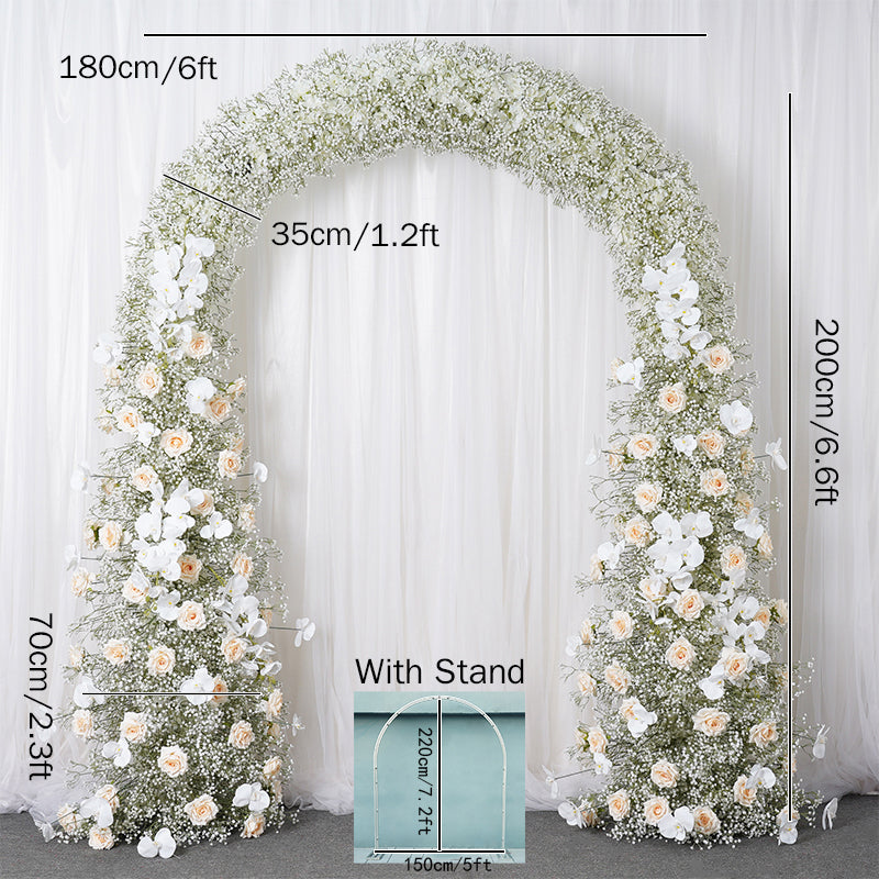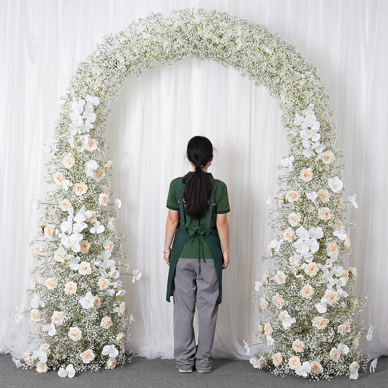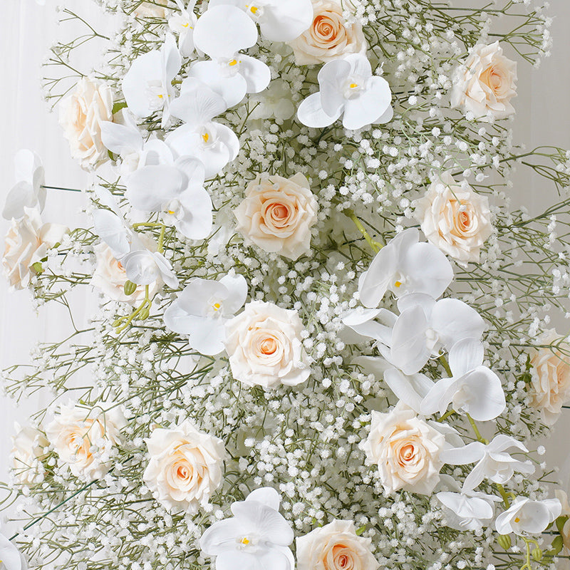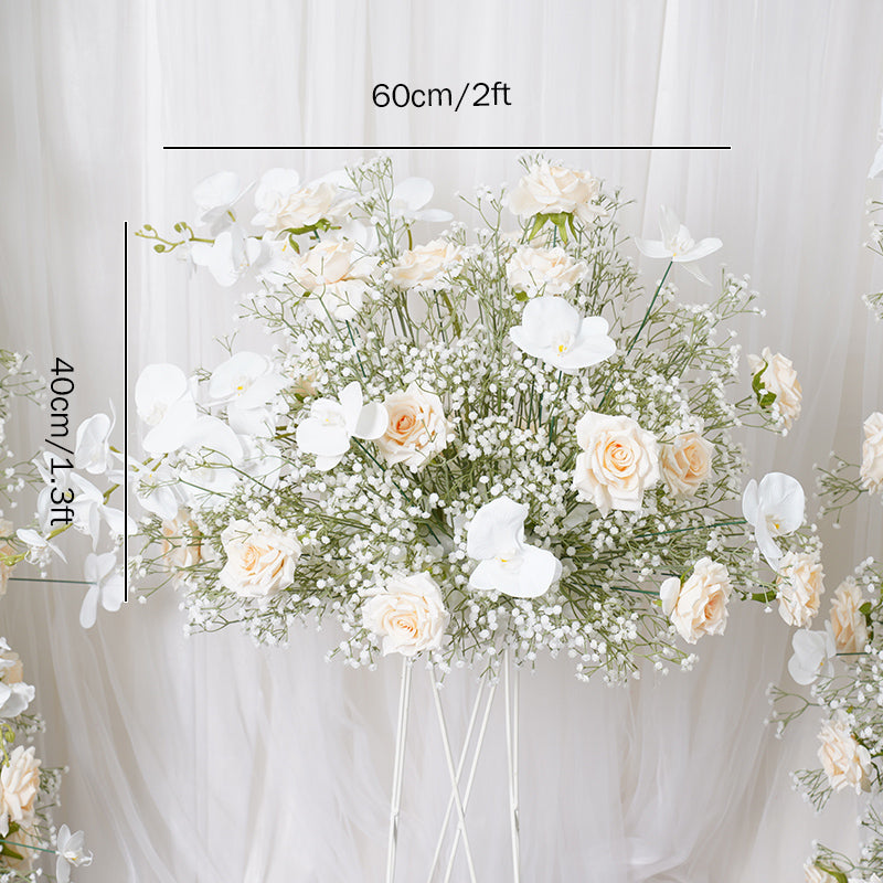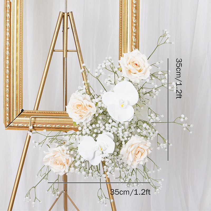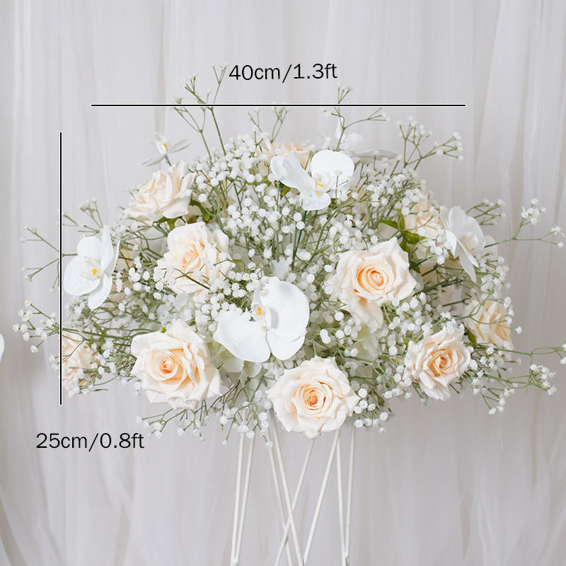 A7788 Champagne Rose White Babysbreath Orchid Floral Arrangement Decor