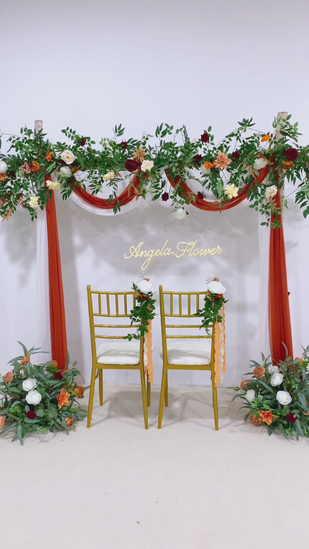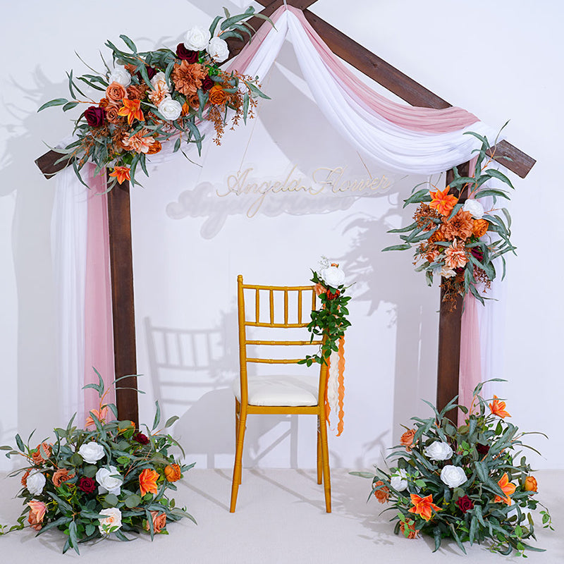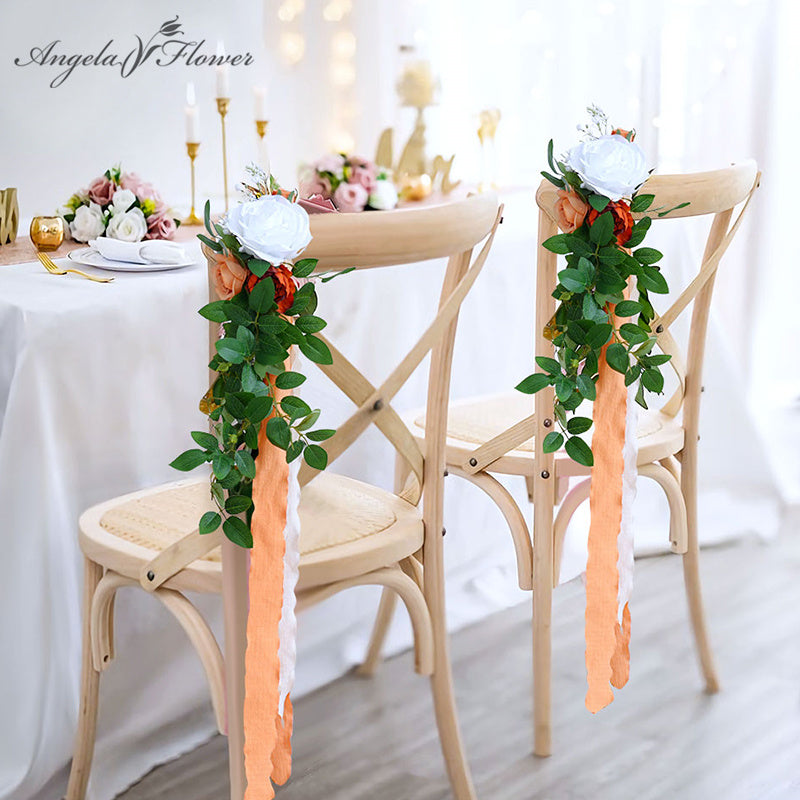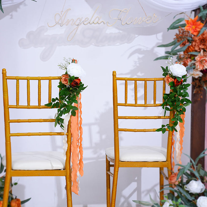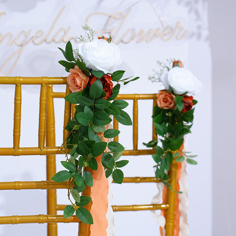 A863608 Autumn Greenery Chair Flower Wedding Decor Floral Rattan Props