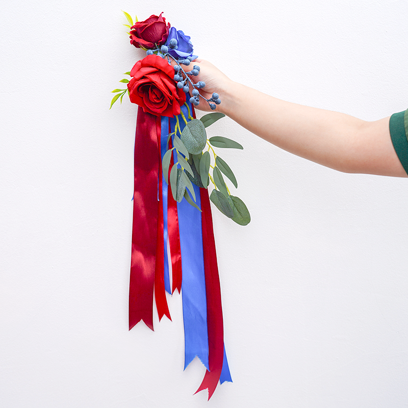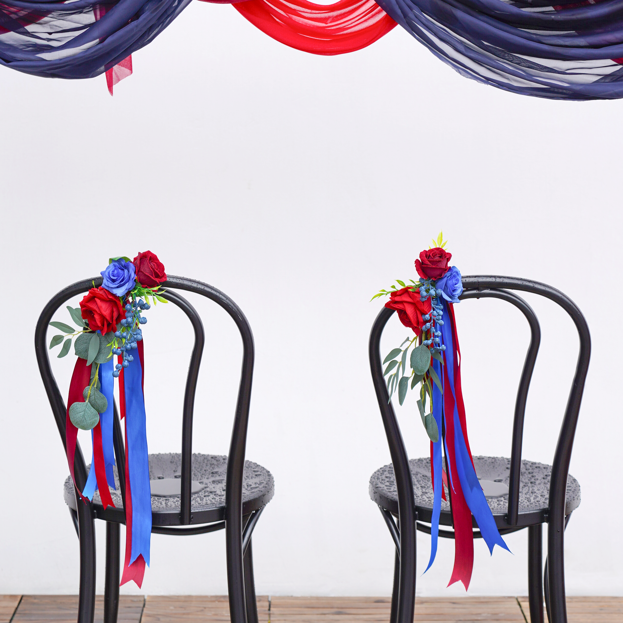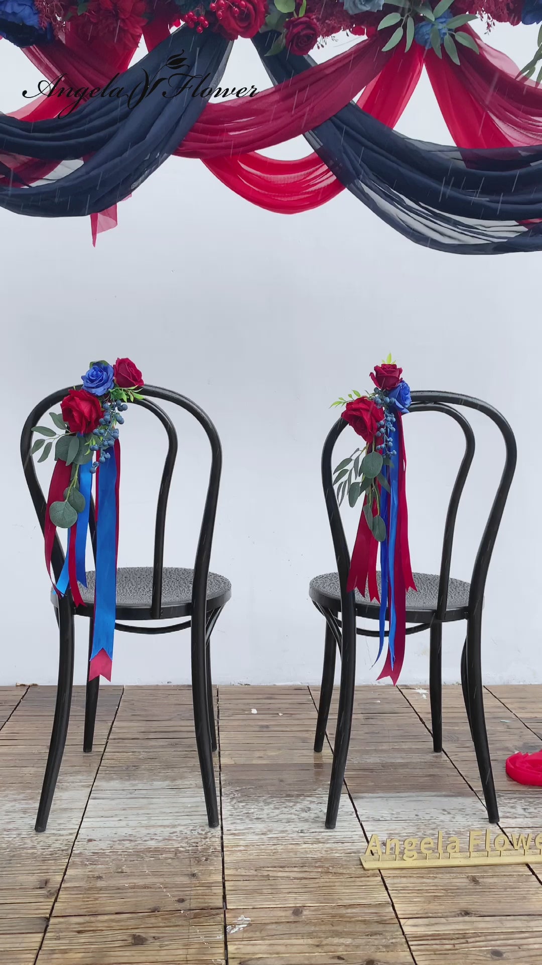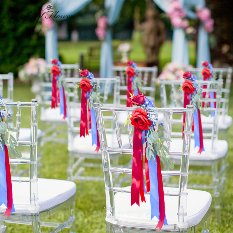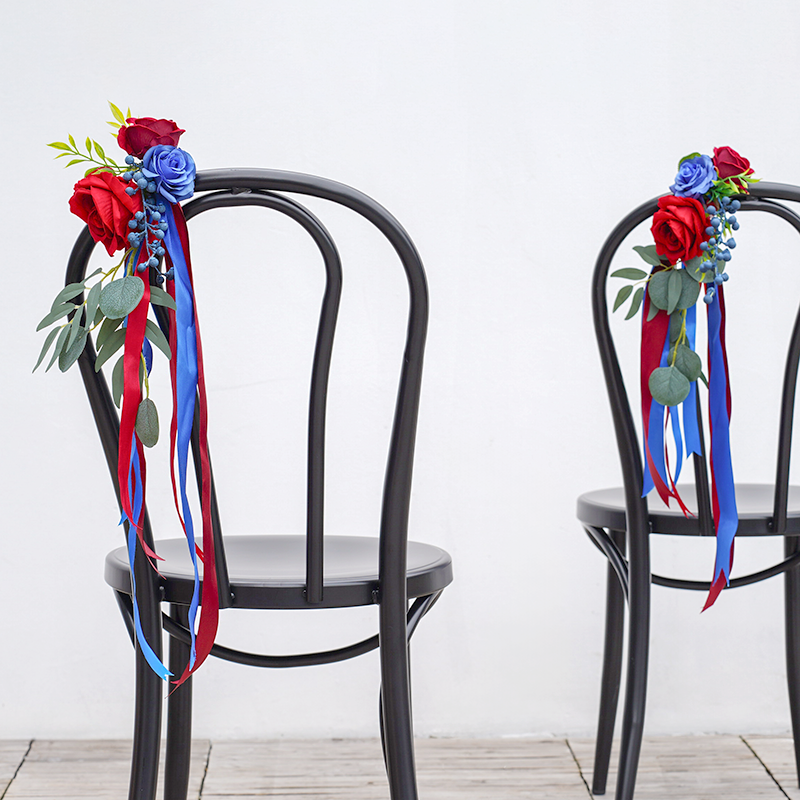 A8637 Red Blue Series With Greenery Chair Flower Wedding Decor Floral
