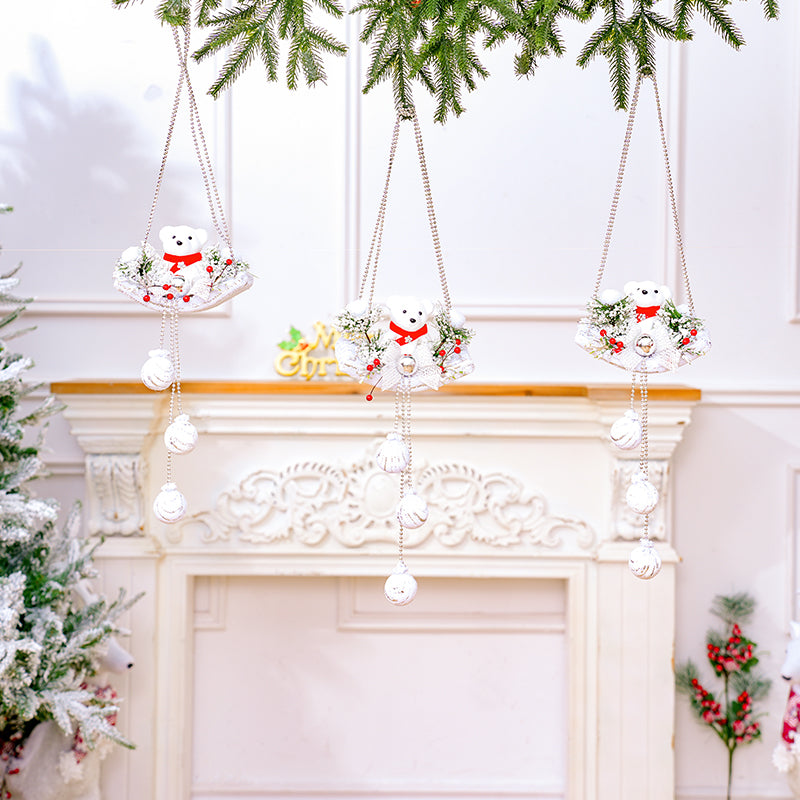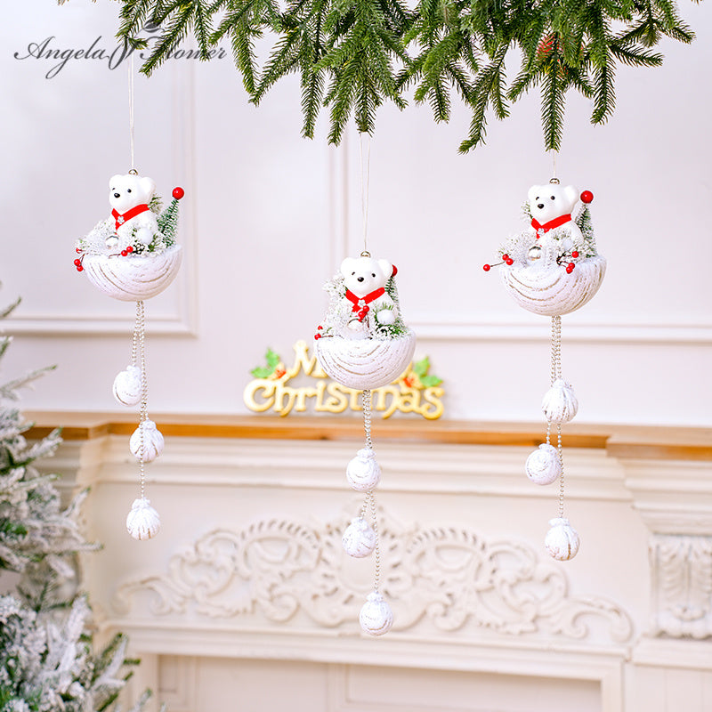 SD0372+SD0303 Christmas Decorations White Small Bear Hanging Small Balls