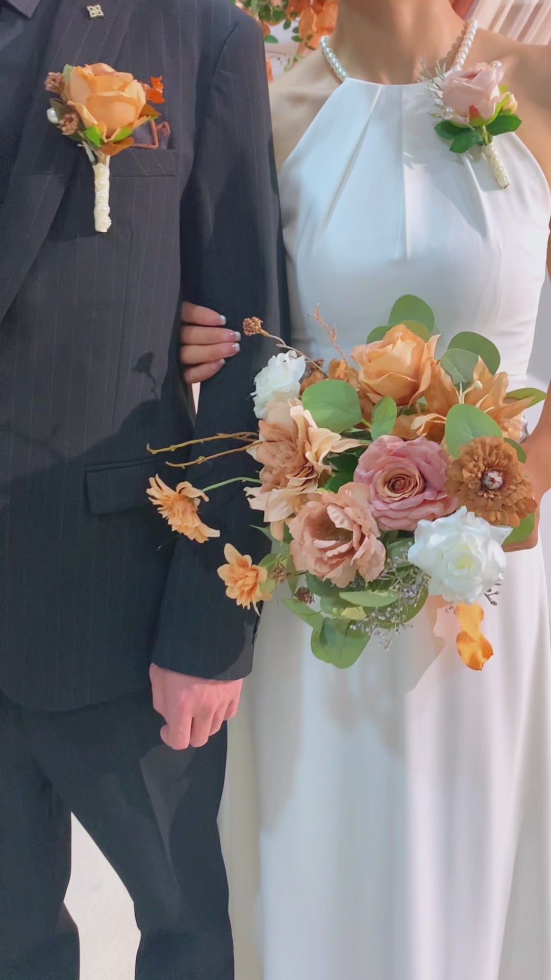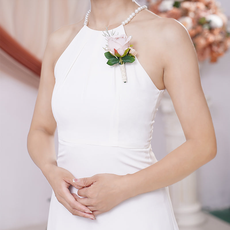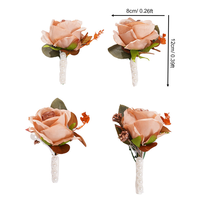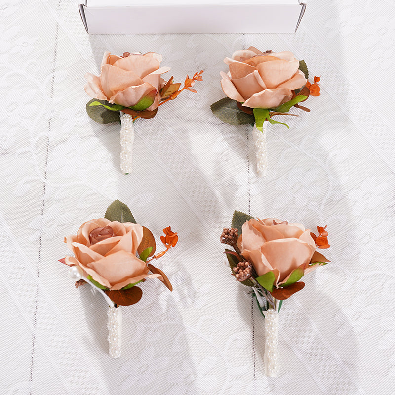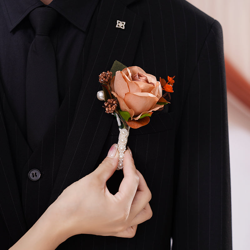 A866456 Coffee White Series Rose Corsage Flower Bridal Bridegroom