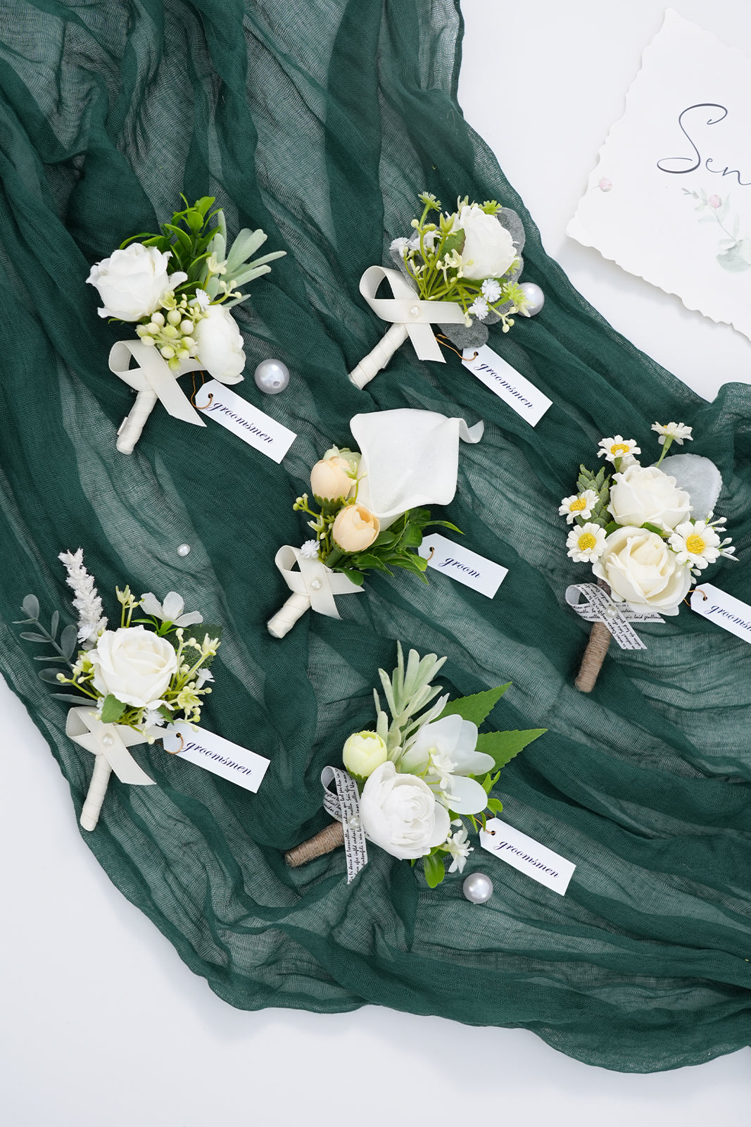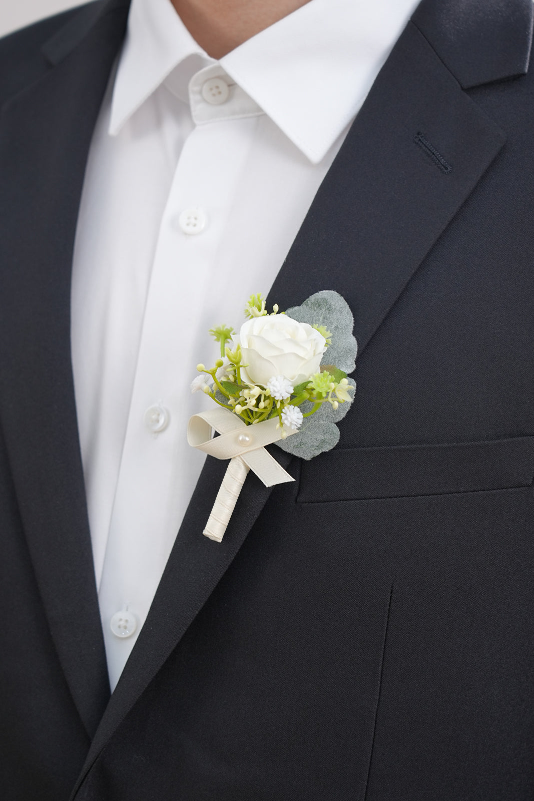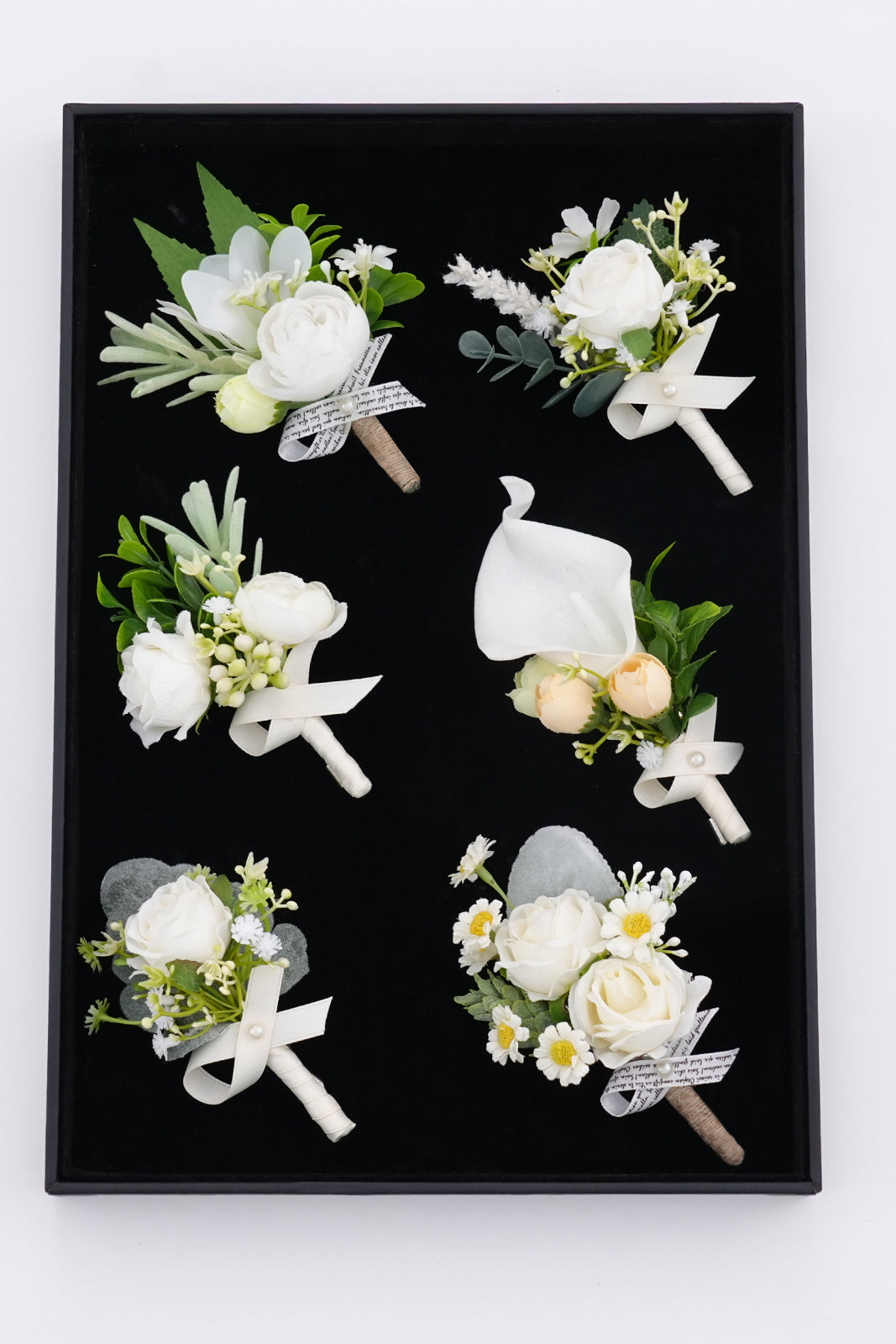 Size and package: Each boutonniere is approx. 3.1'' W x 4.1'' H, suitable for all men. The set includes six boutonnieres in total, with 6 different styles. 1 for Groom, and others for groomsmen or any important guest.