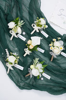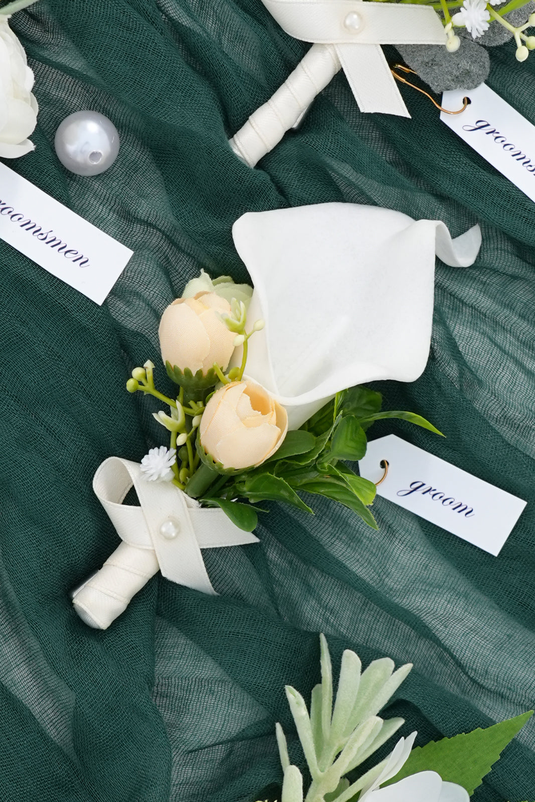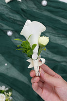 Color Inspiration: This corsage is meticulously crafted with pure white PU real touch calla lilies, roses, daisies, and delicate green plant vine accents. It's the perfect silk flower corsage to add a touch of sophisticated elegance to any special occasion, especially weddings. Every detail showcases exquisite craftsmanship, creating an elegant and refined embellishment. This white flower corsage is a beautiful and timeless accessory for the bride, bridesmaids, or any guest looking to add a touch of floral charm to their attire.