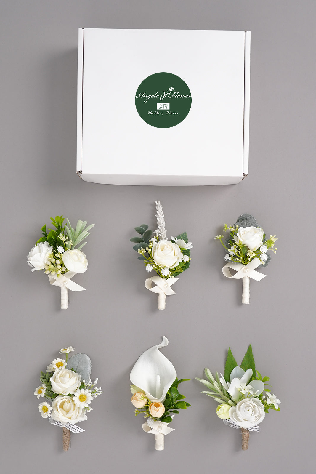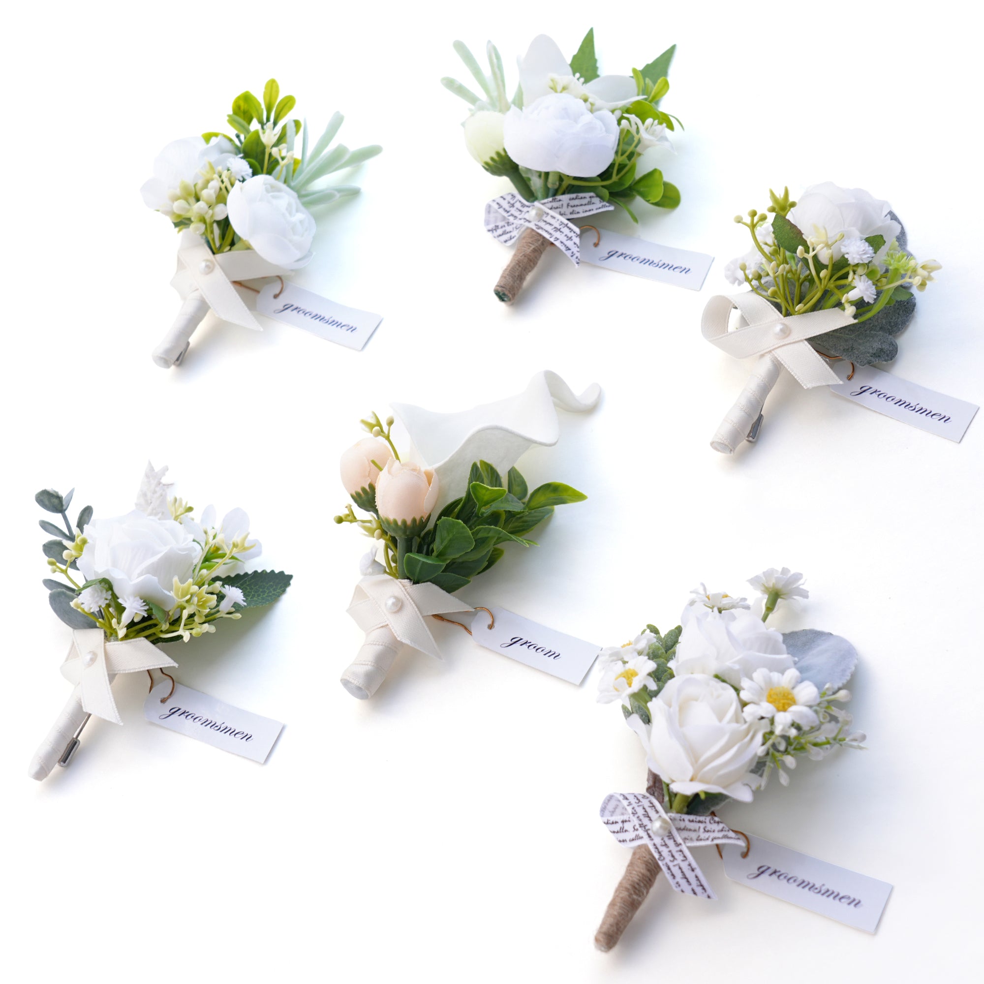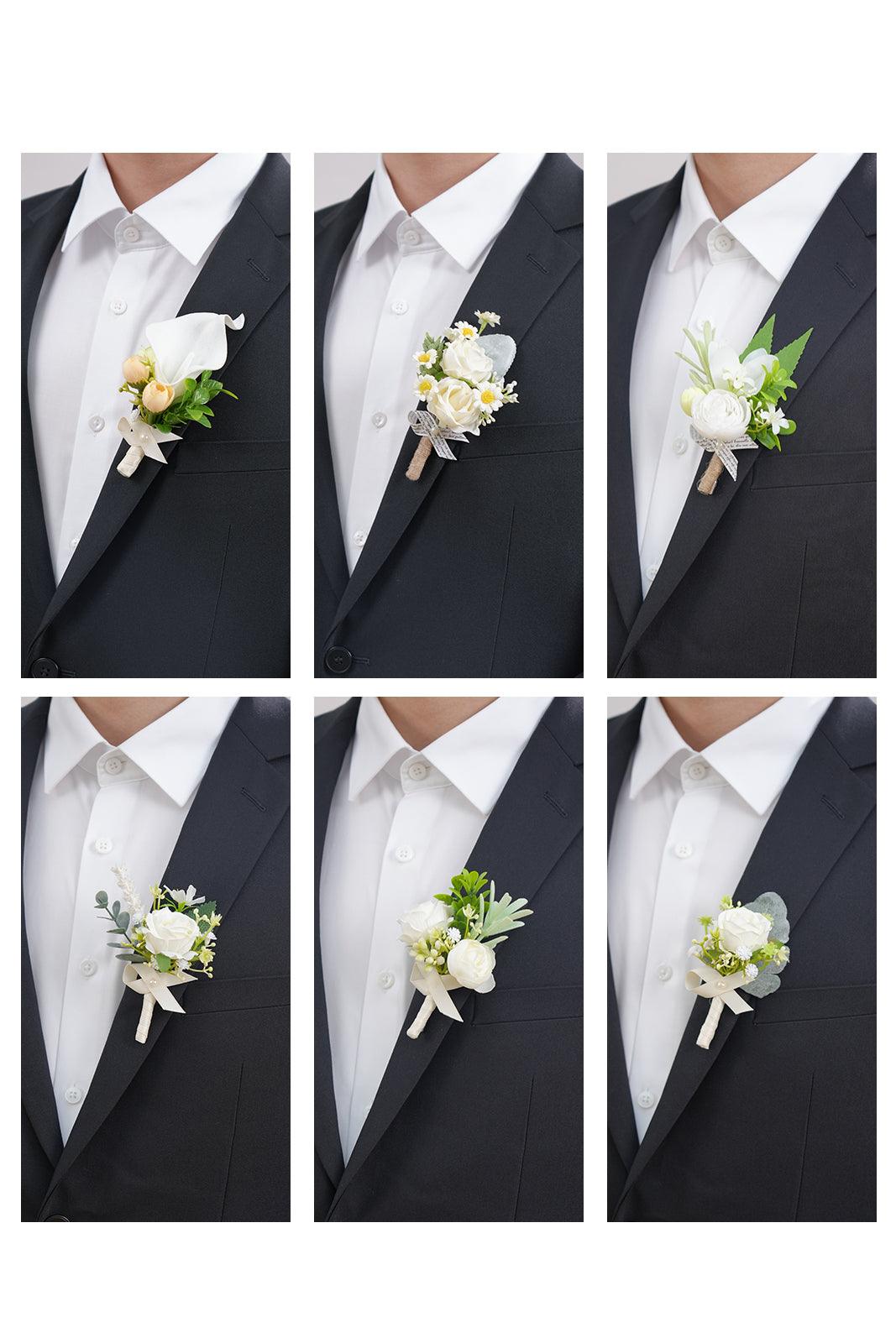 A8981 6pcs/set White Rose Calla Daisy Corsage Flower Wedding Bridegroom Supplies