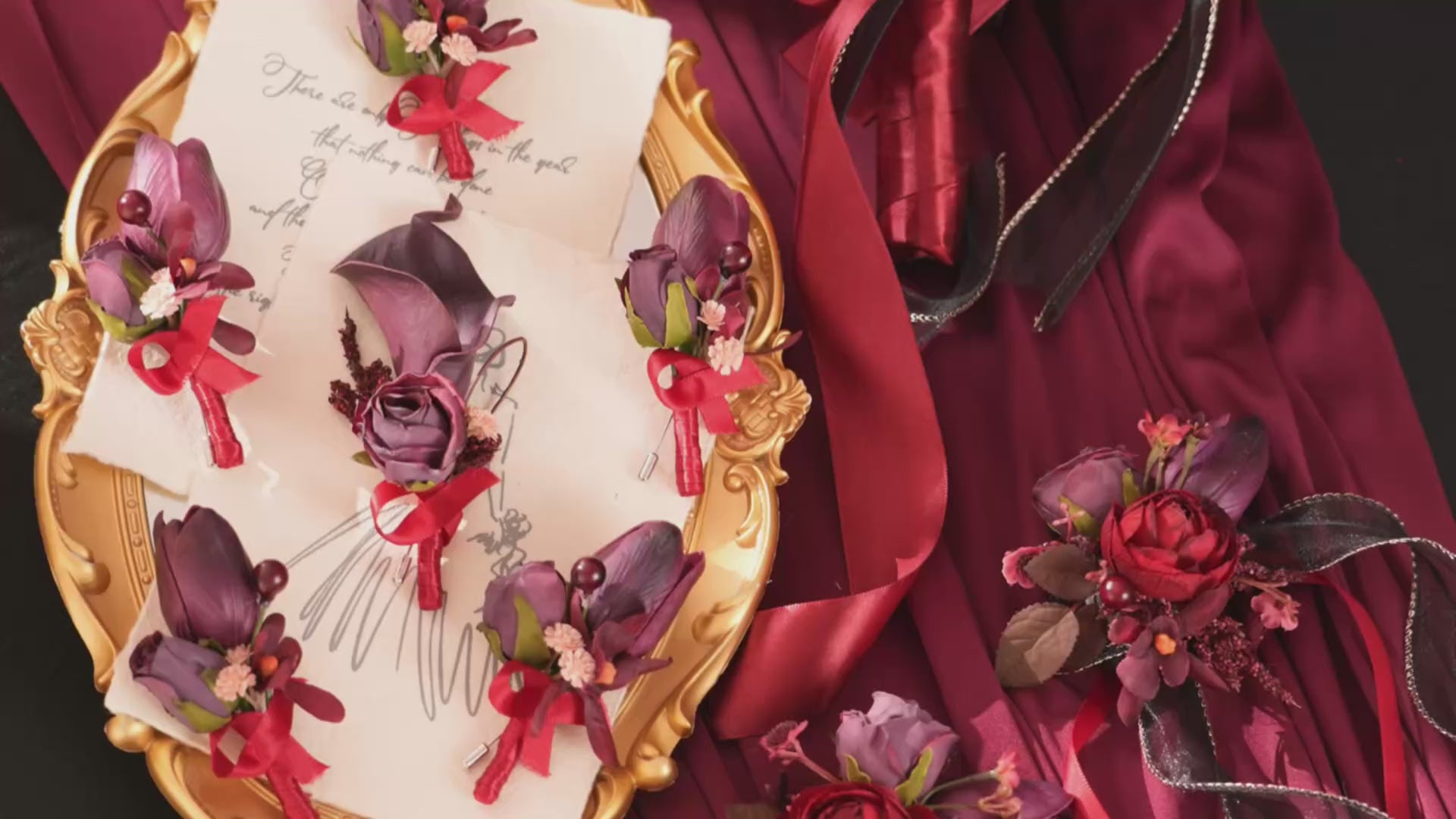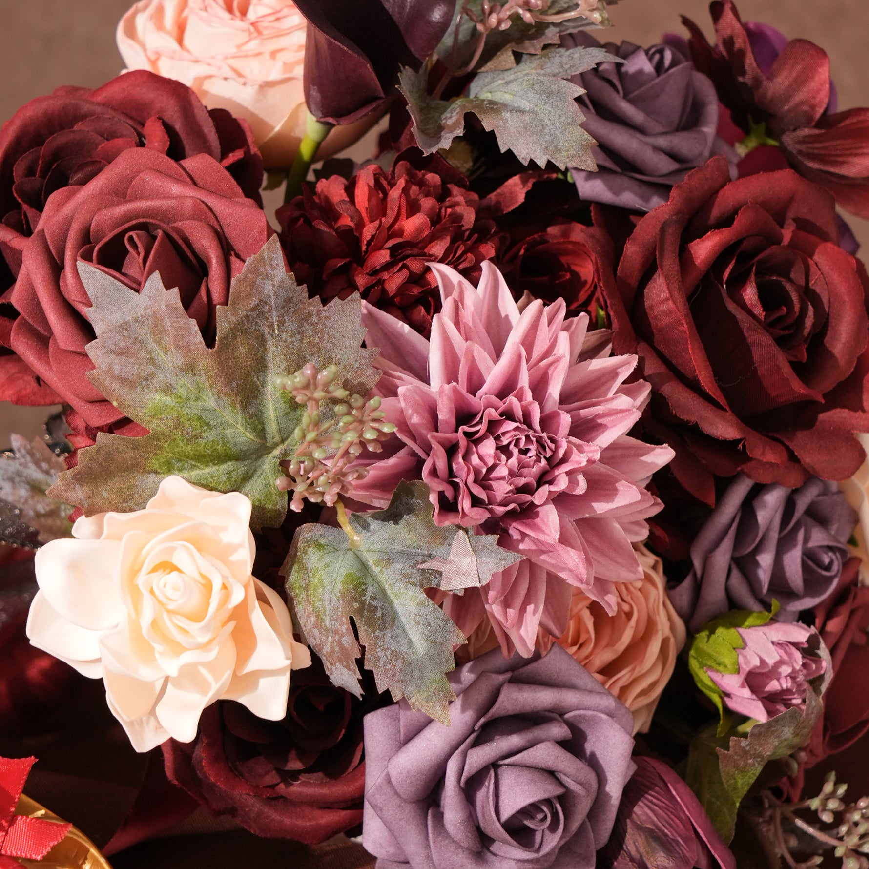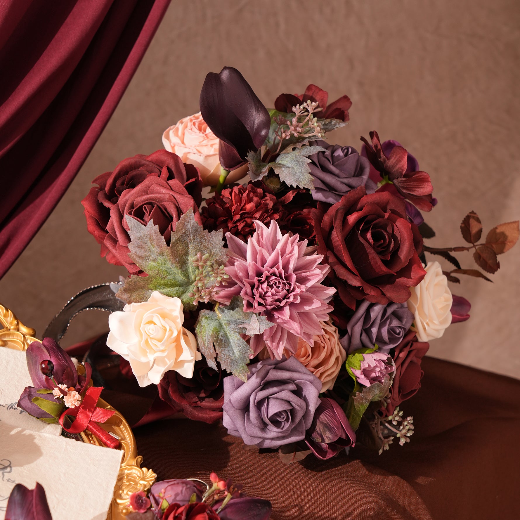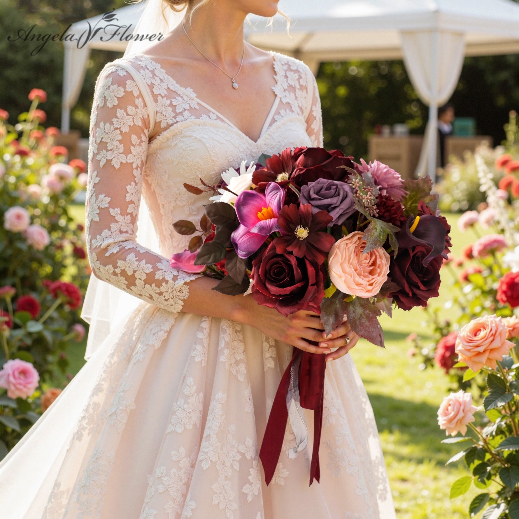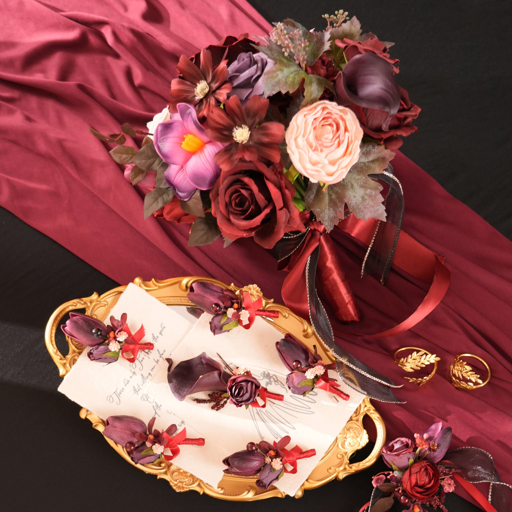 A9058 Burgundy Artificial Bridal Bouquet Wrist Flower Wedding Floral Arrangement
