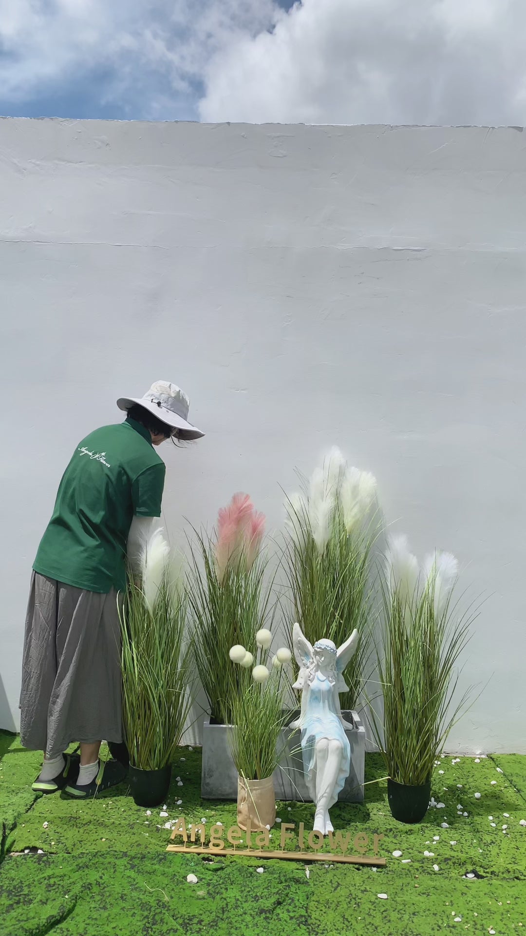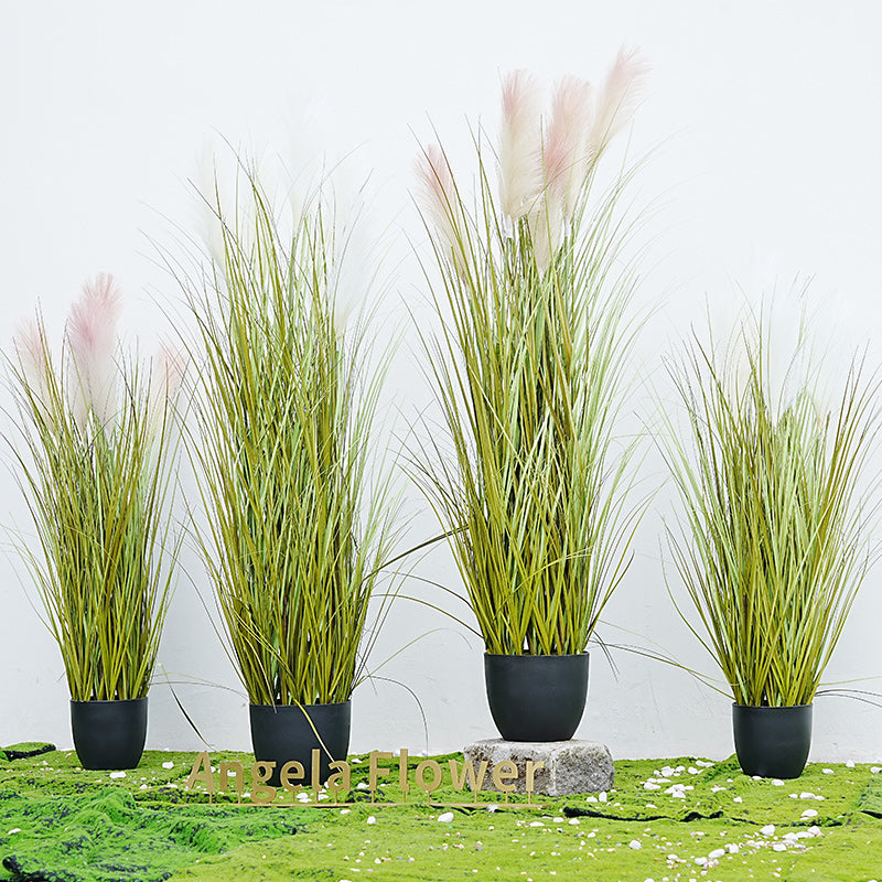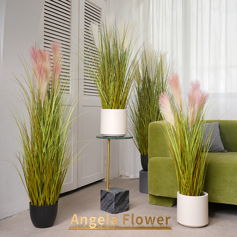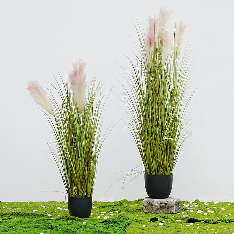 A2027115+2027113 Plants Grass With Pink White Reeds Bonsai Green Plant