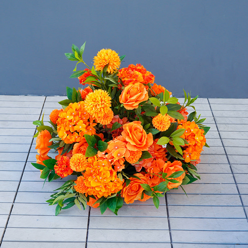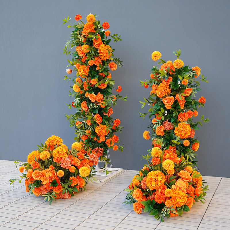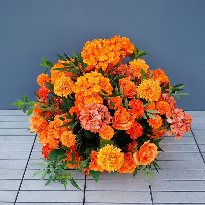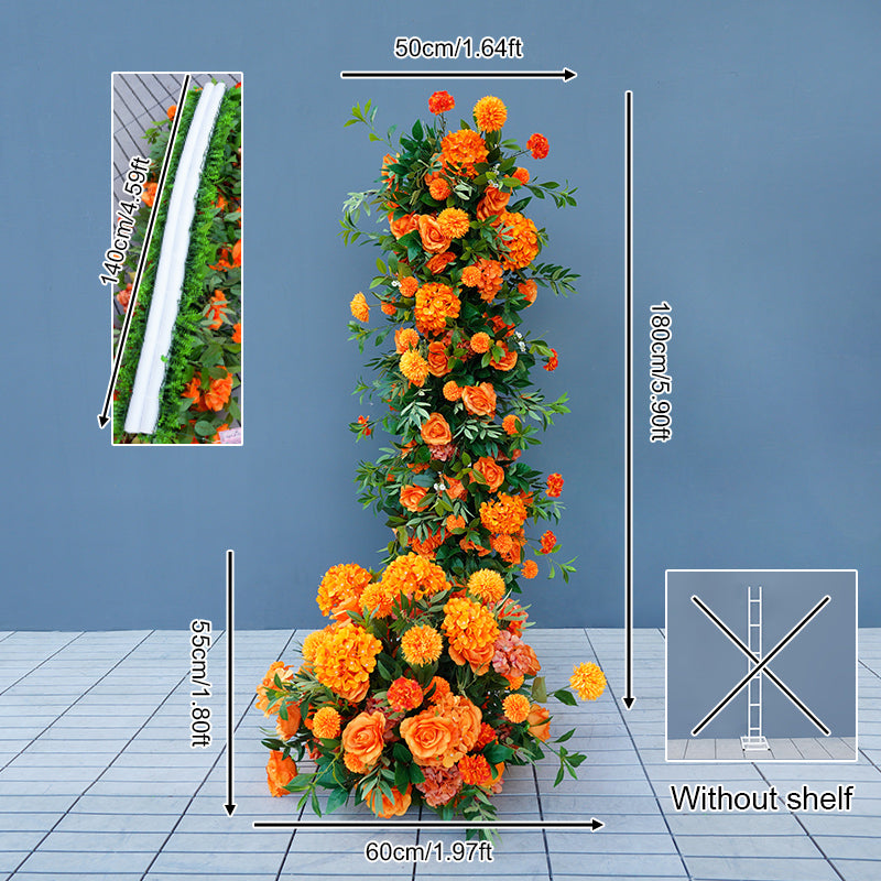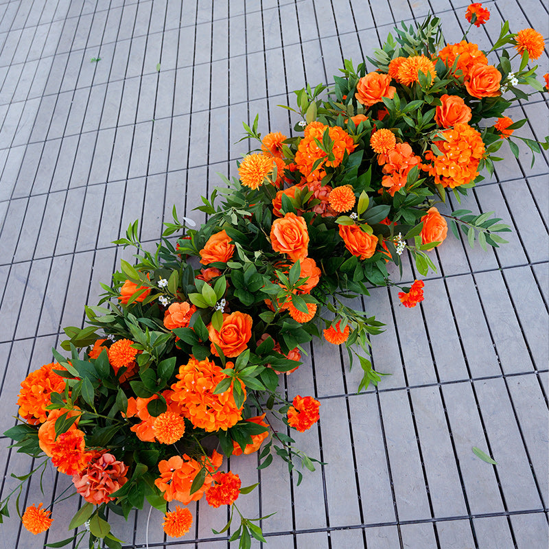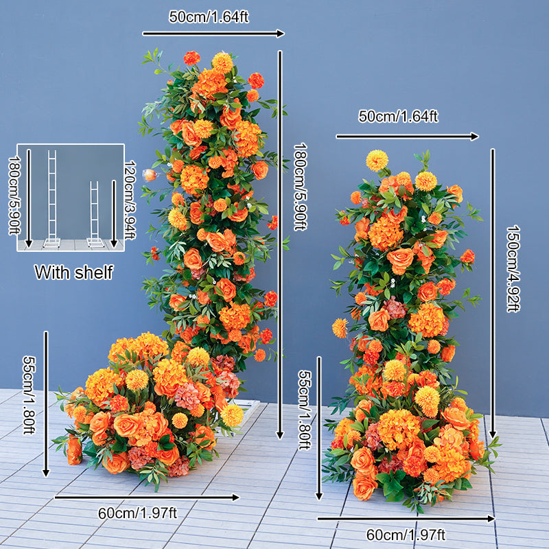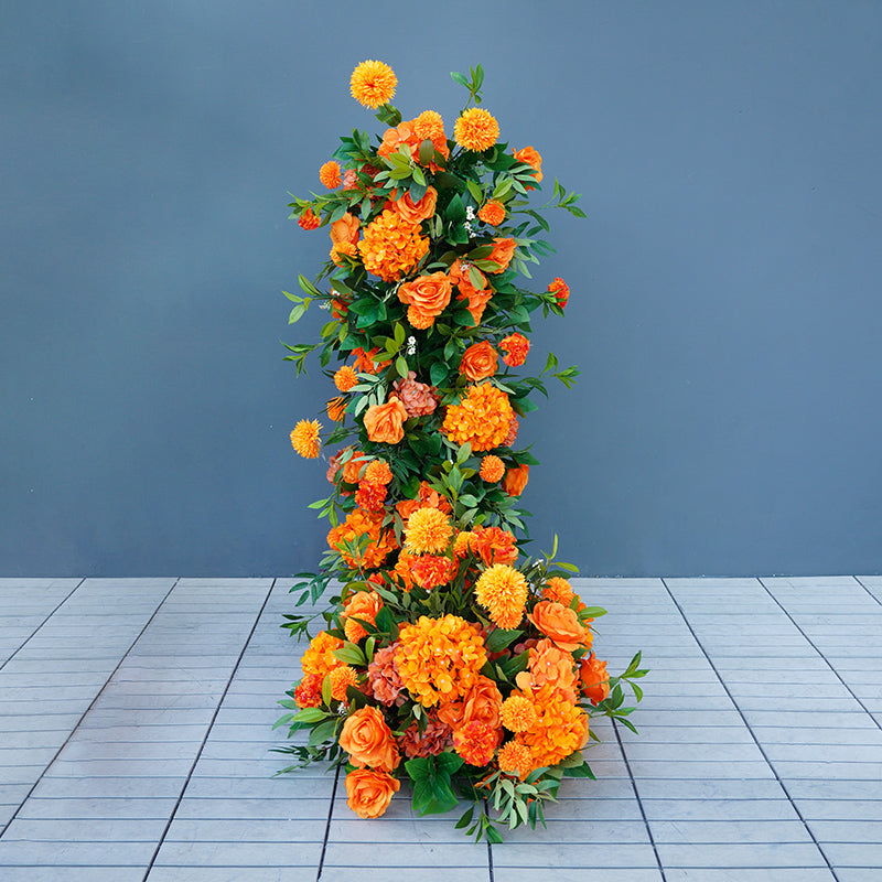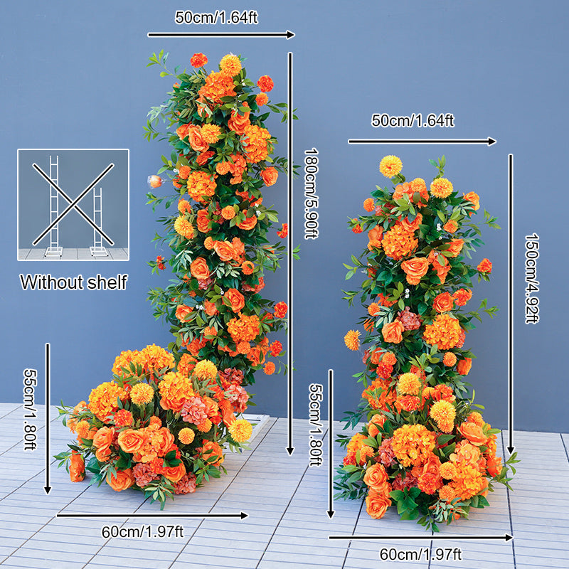 A8678 Orange Rose Hydrangea Greenery Wedding Horn Arch Floral Arrangement
