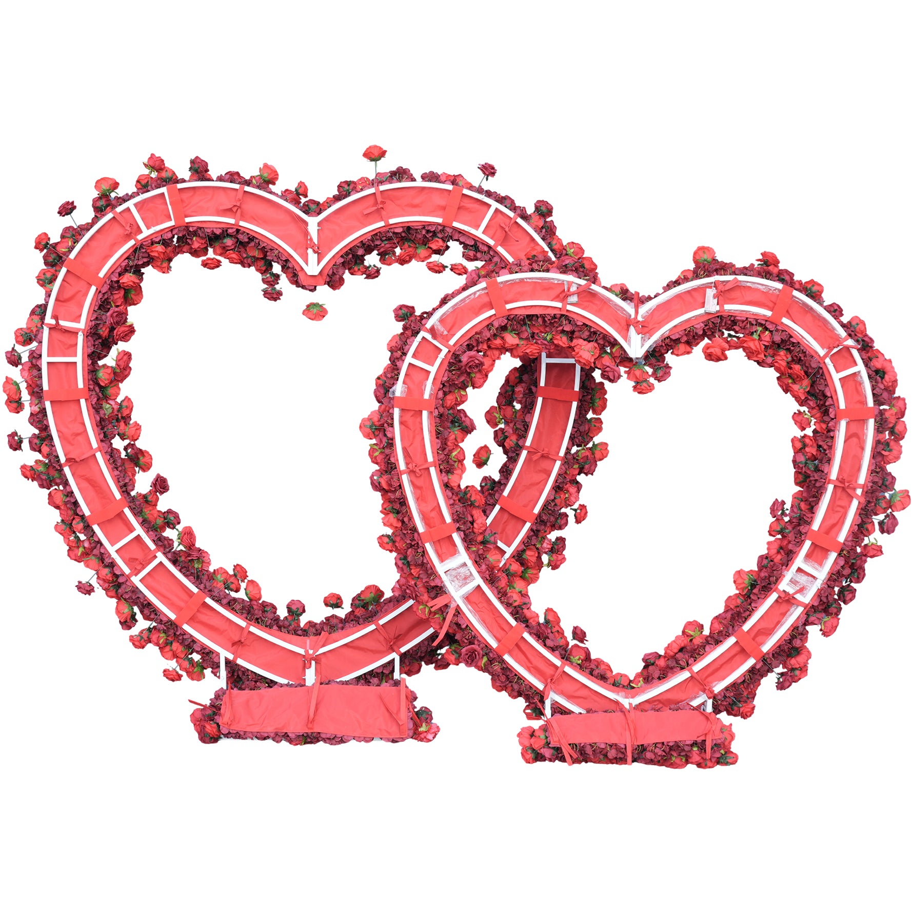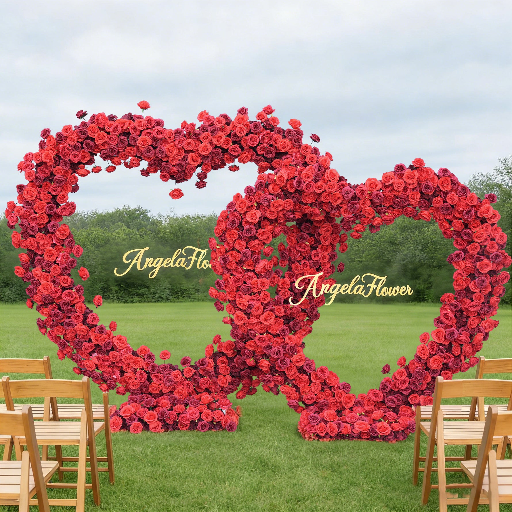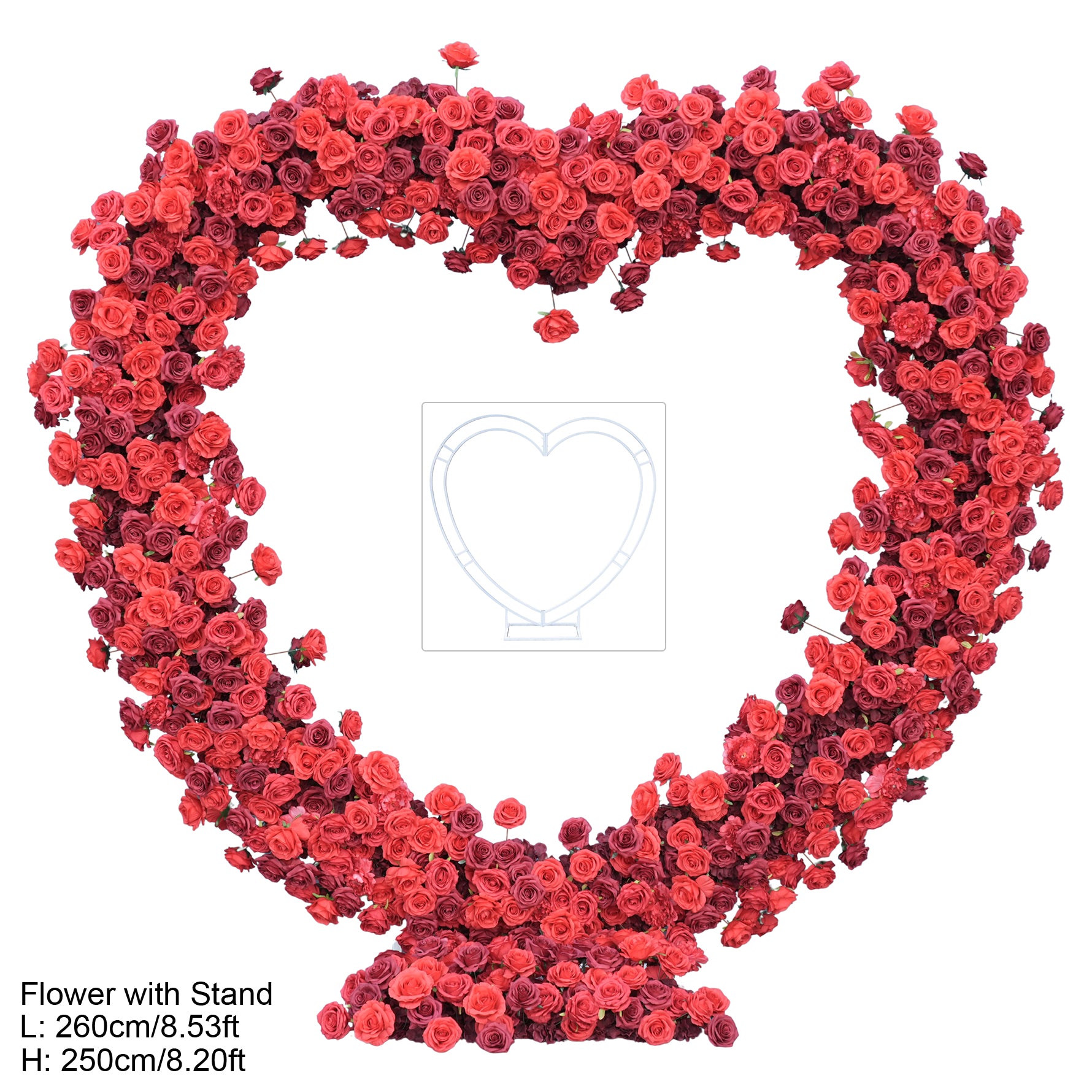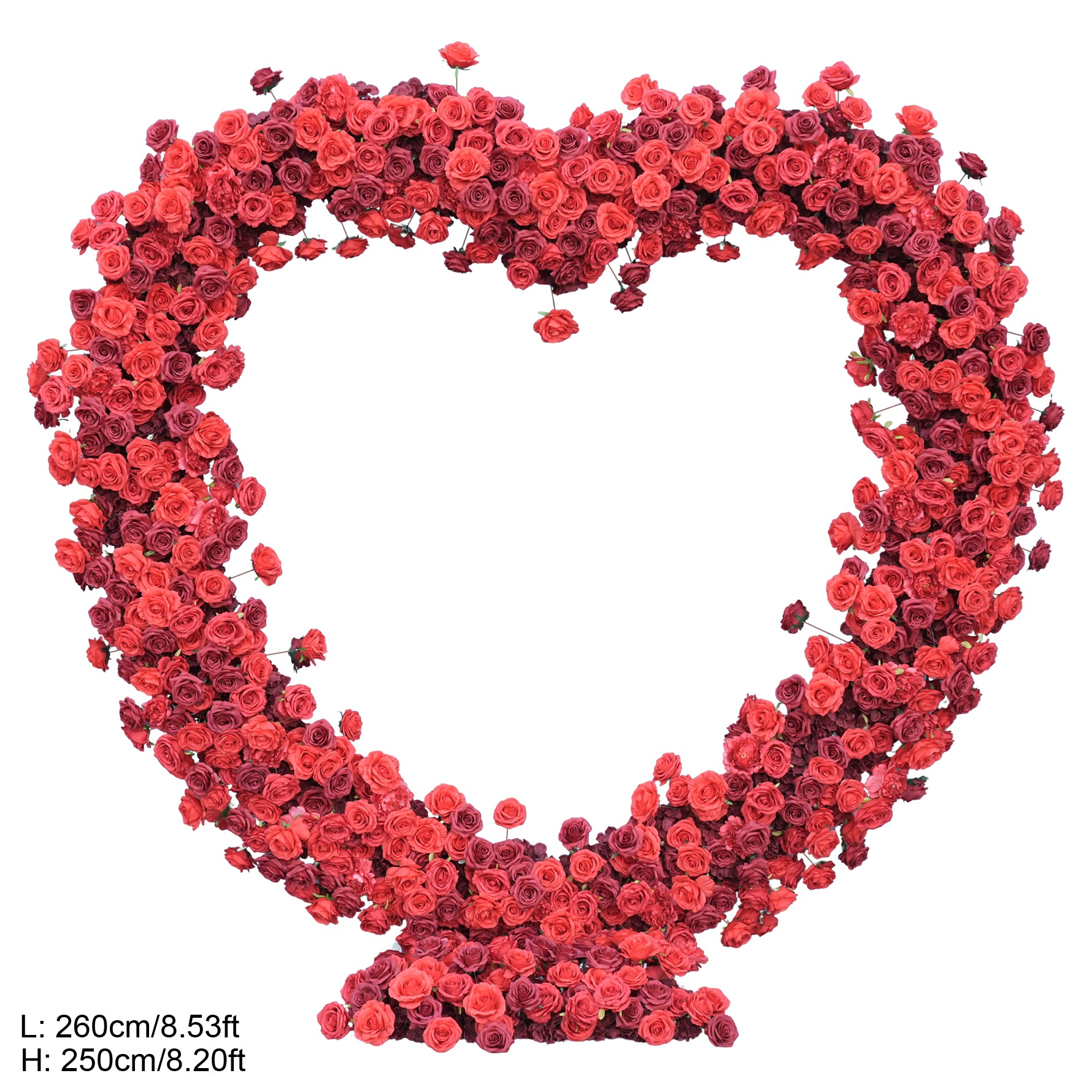 A8869 8.53ft Large Dark Red Heart-Shaped Flower Arrangement Cloth Base Wedding Props