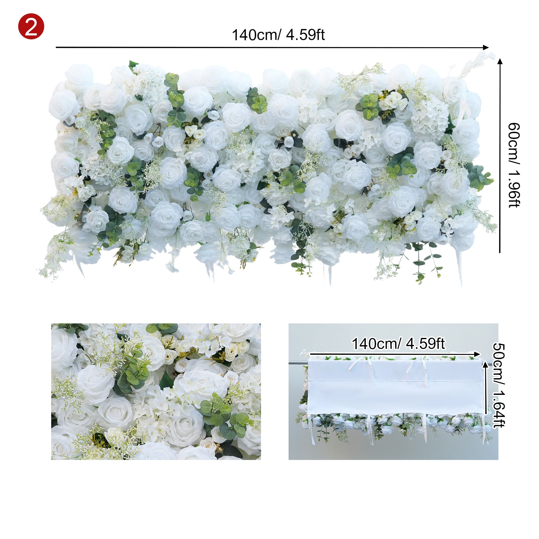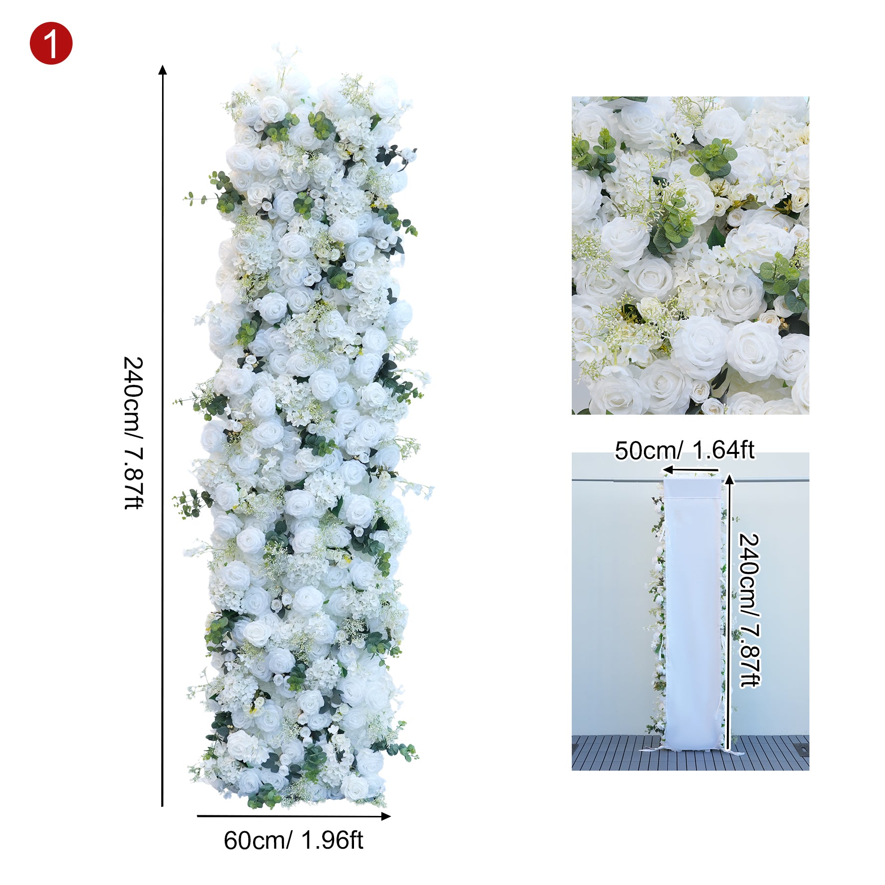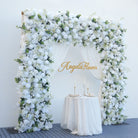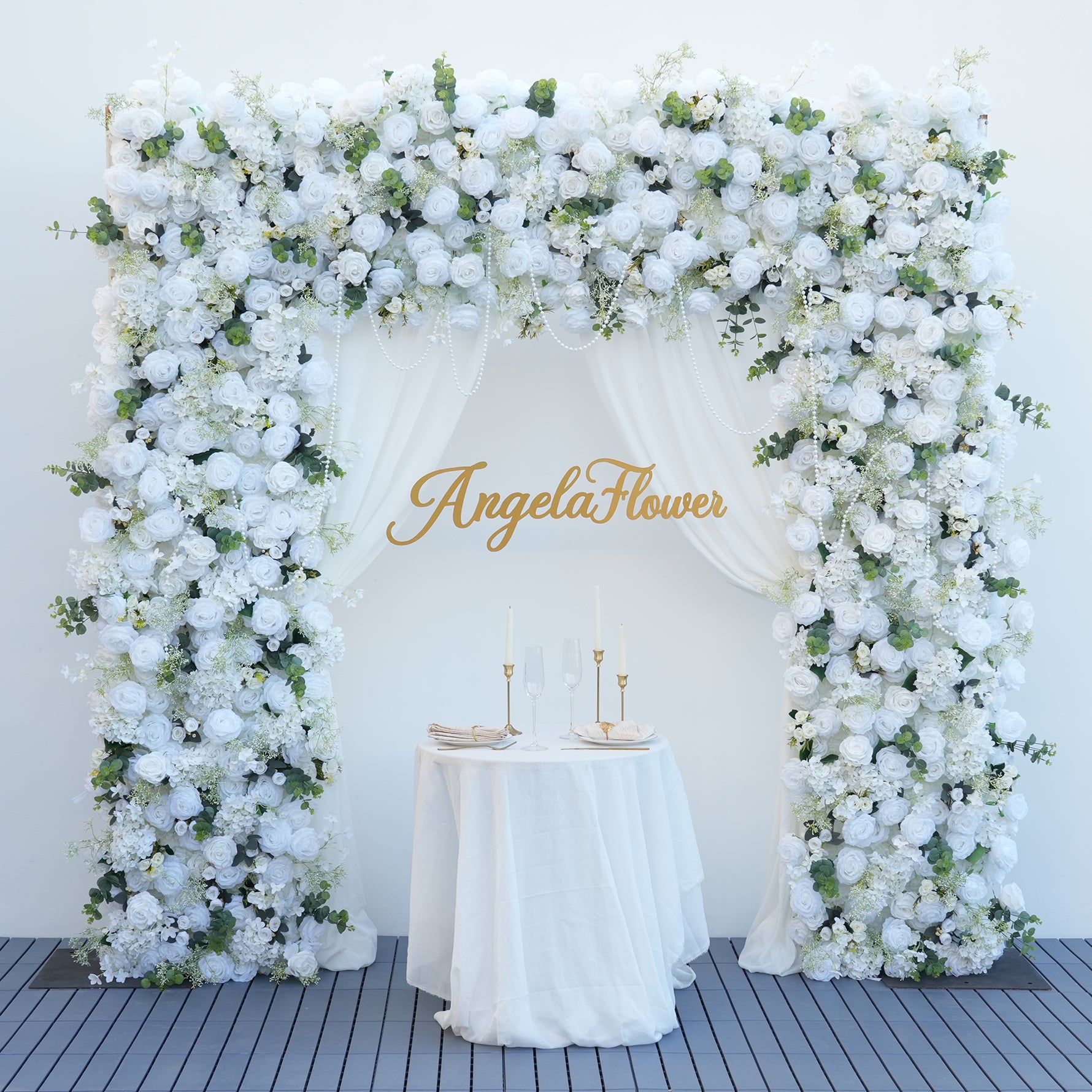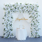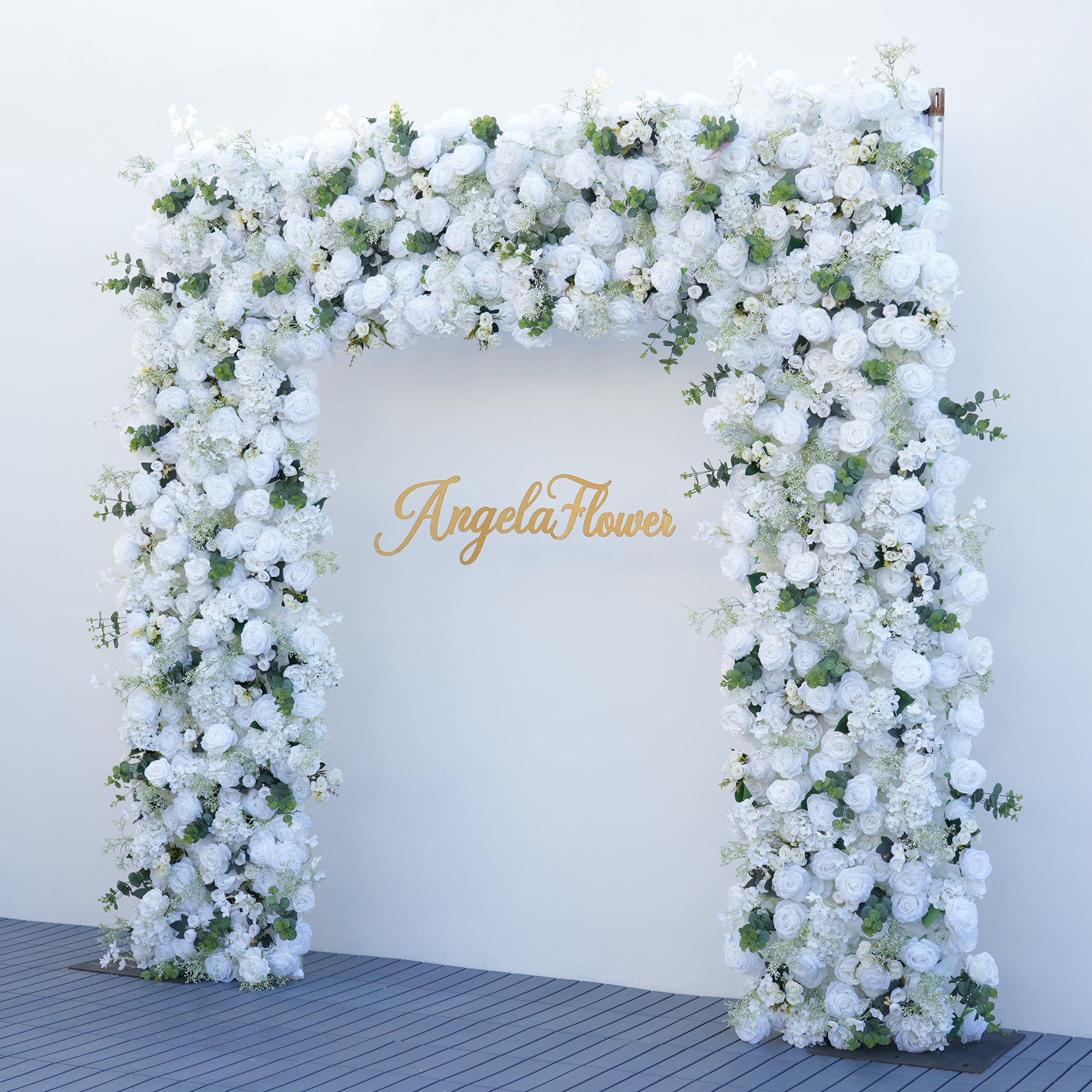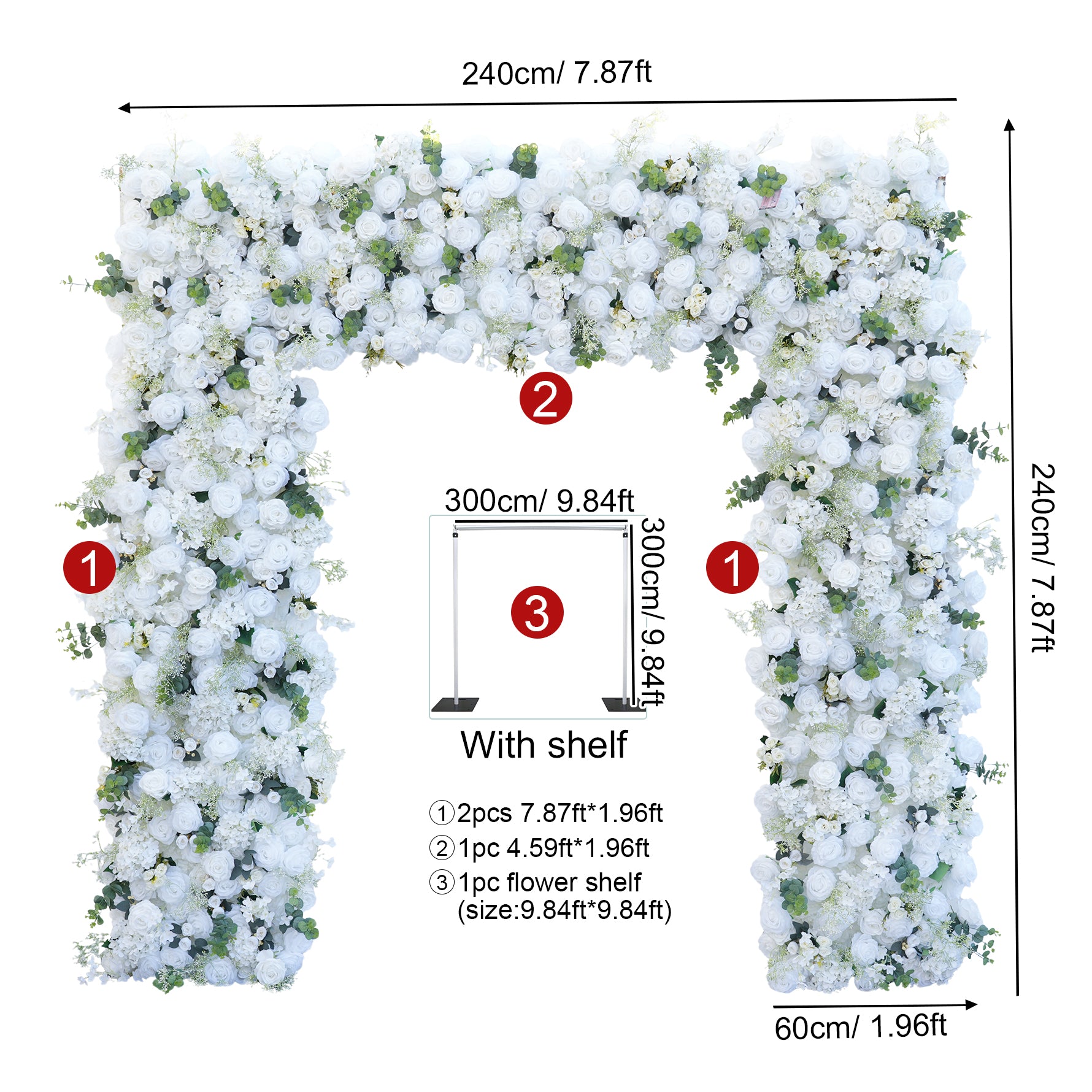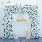 A9030 White Rose Baby's Breath Floral Row Cloth Base Wedding Reception Square Arch