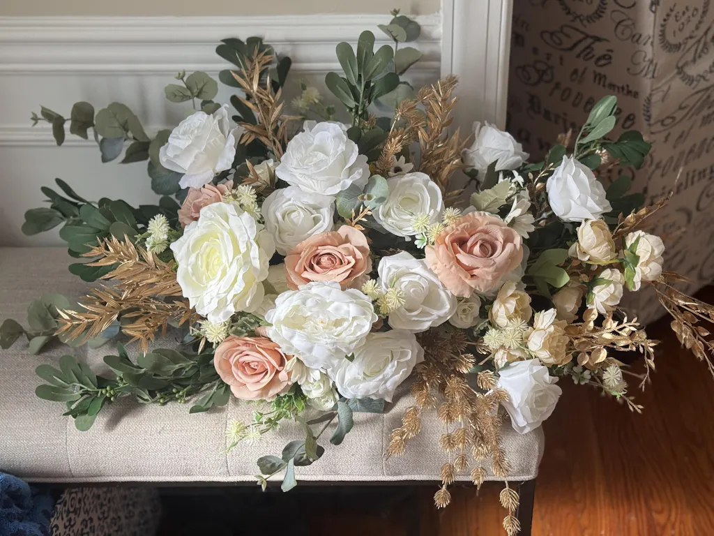 【Manual】: Due to shipping and packaging reasons, the artificial flowers may be squeezed, please use the steam or hair dryer to make the flowers stretchm will be ok.