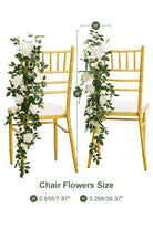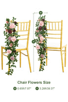 Color Inspiration: Transform your wedding with our pink chair flower set! This 4-piece collection, featuring delicate roses and lush greenery, adds a romantic touch to your special day. Perfect as wedding chair decorations, these charming accents complement other wedding flowers, creating a cohesive and enchanting ambiance. Easily attachable and beautifully designed, these chair flowers are a must-have for any romantic wedding.