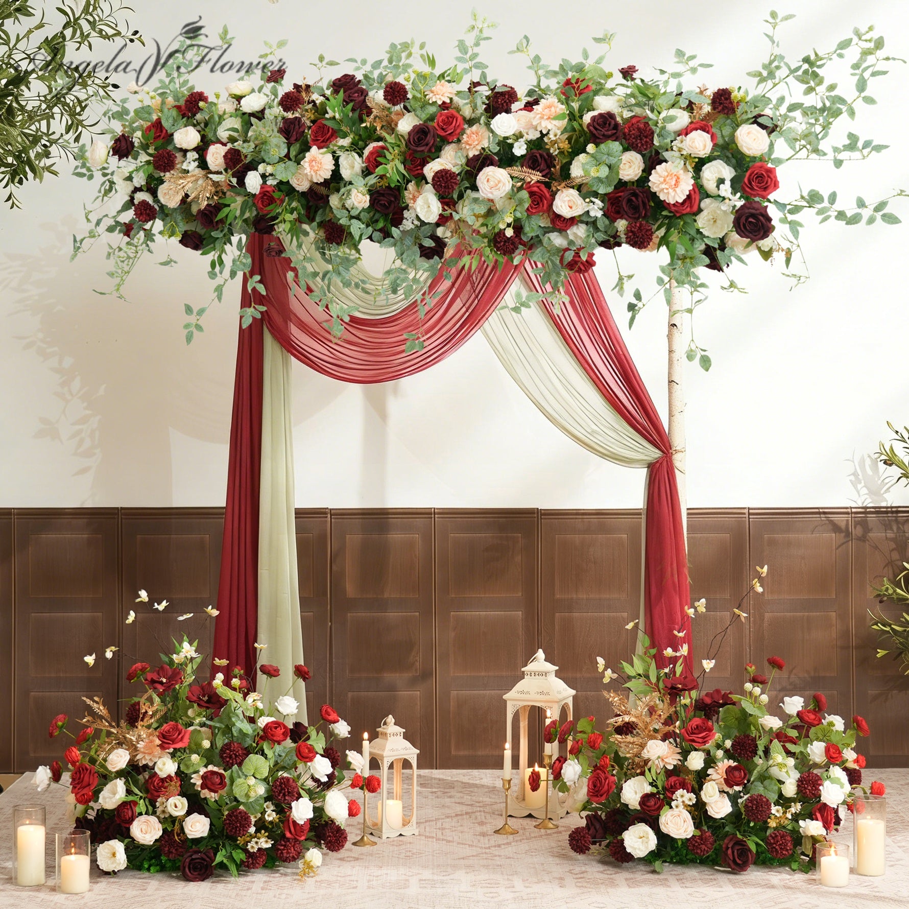 A9060 Artificial Red White Greenery Flower Row Arrangement Wedding Backdrop Props
