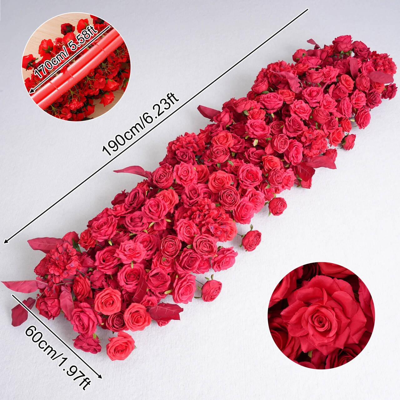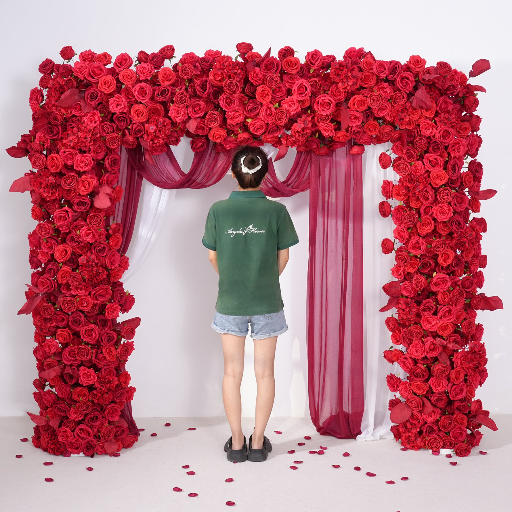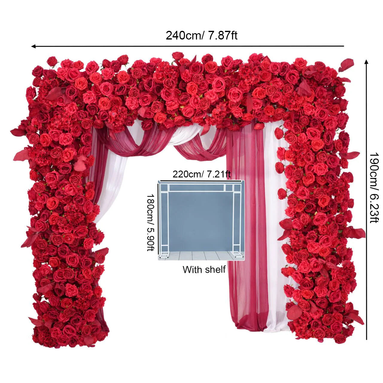 A875204 Red Flower Row Wedding Backdrop Arch Floral Arrangement