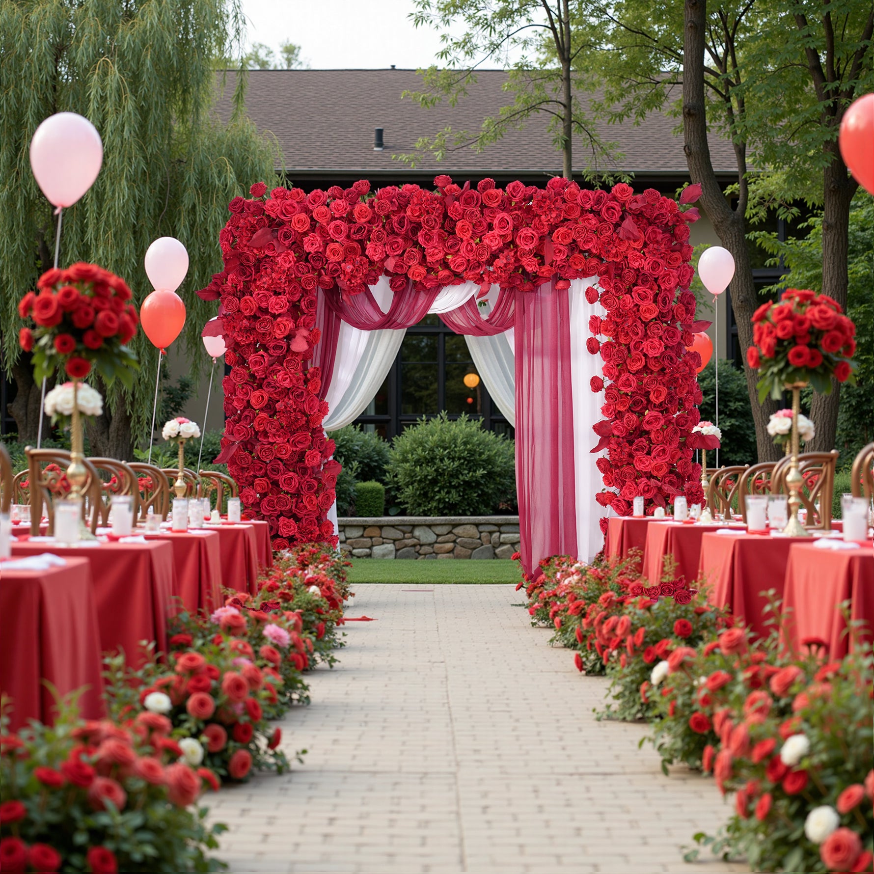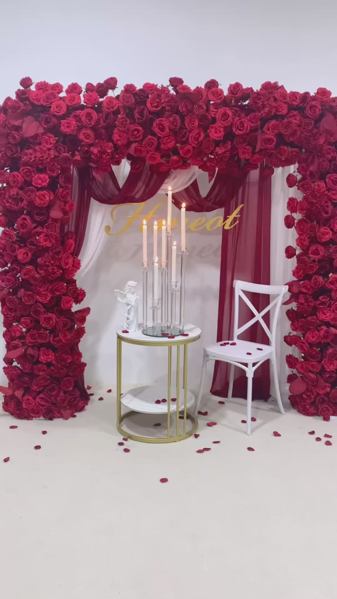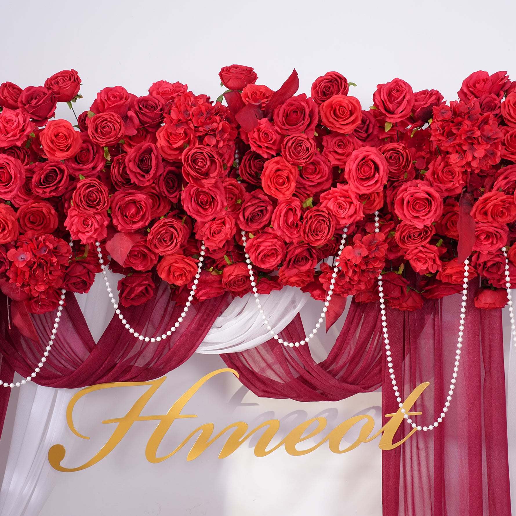 A875204 Red Flower Row Wedding Backdrop Arch Floral Arrangement
