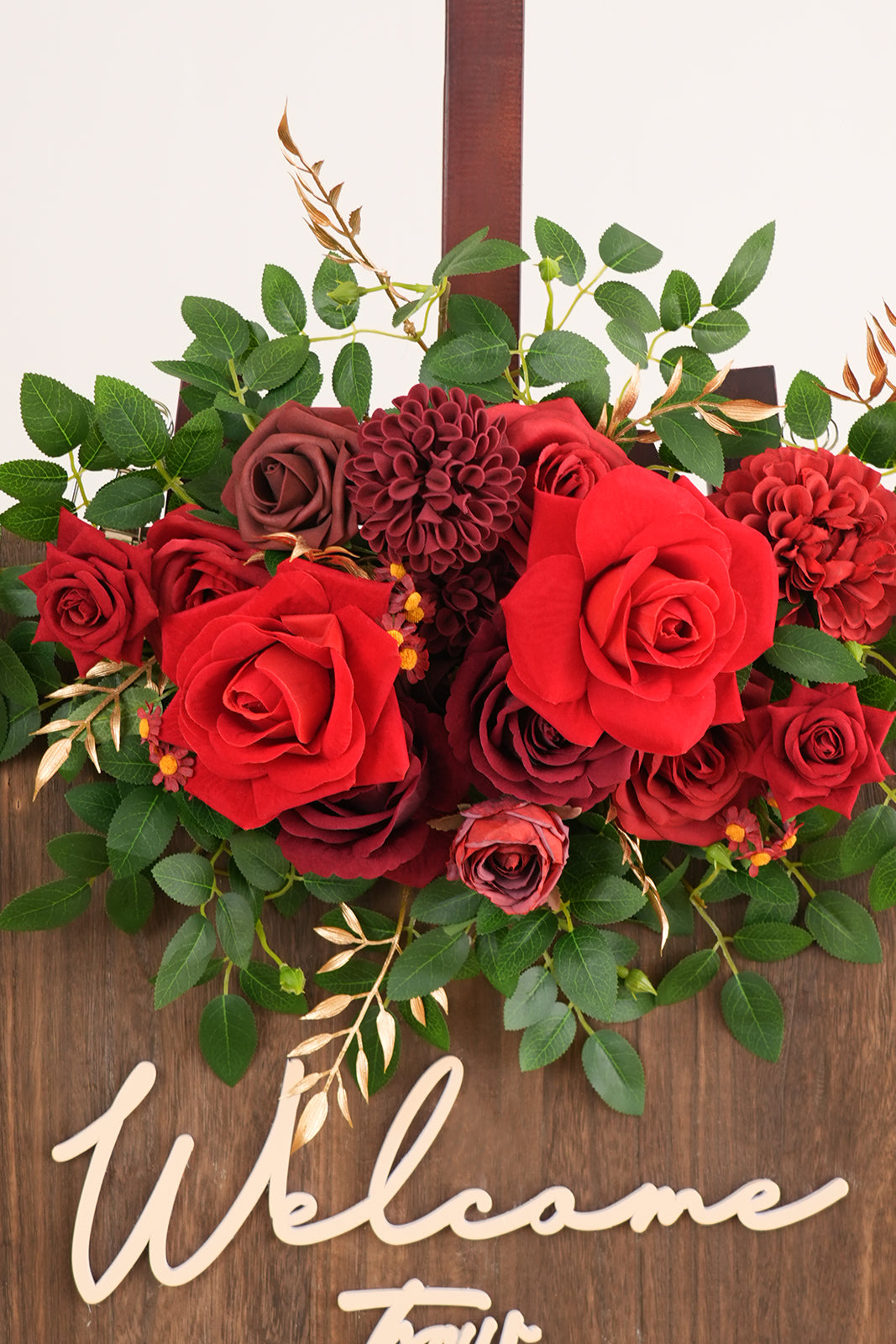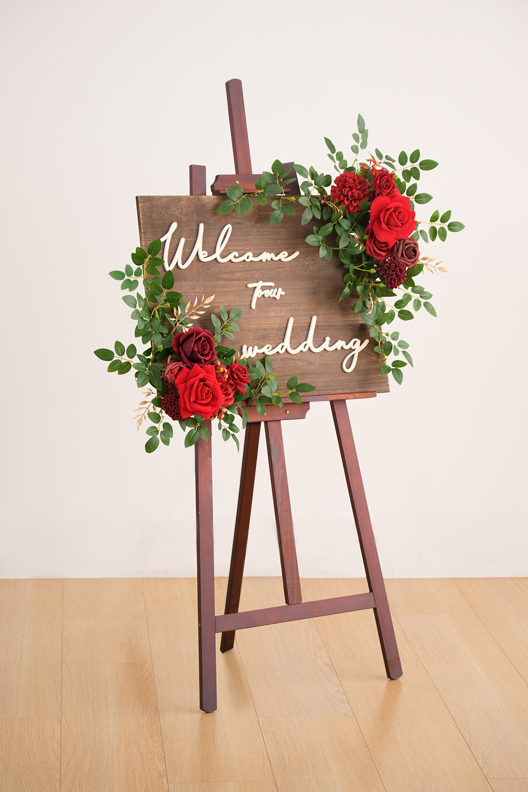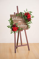 A9005 2pcs Red Rose Greenery Welcome Sign Flowers Wedding Entryway Decor Props
