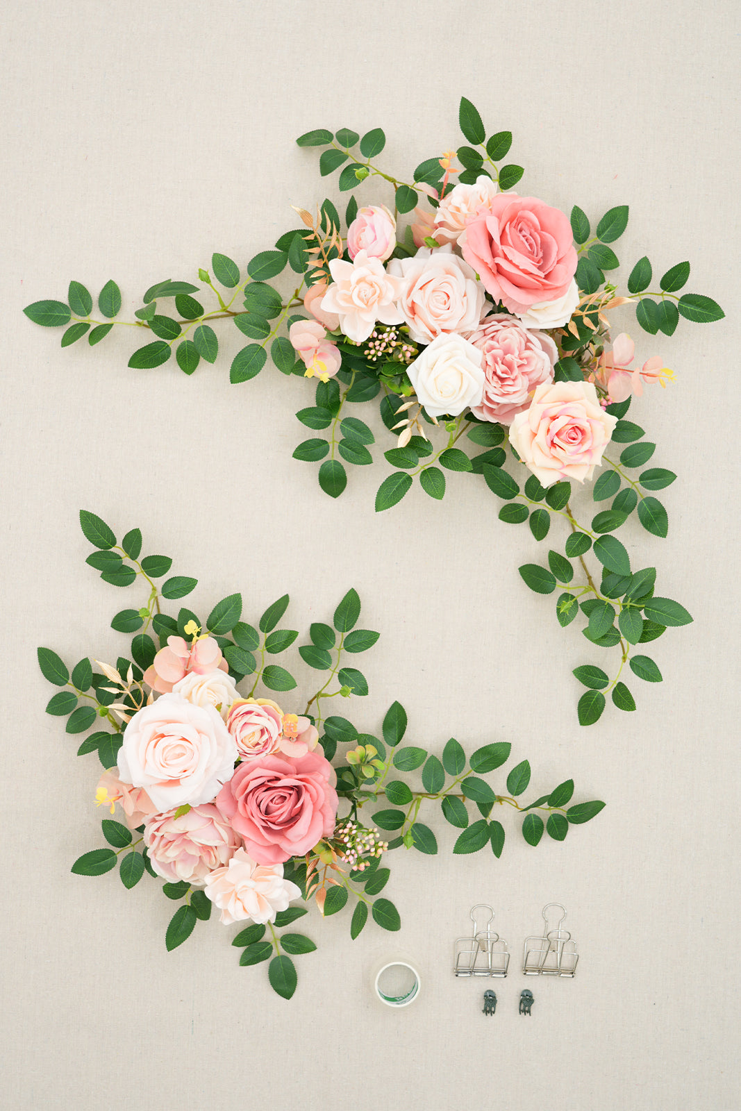 Package: Pre-fabricated flower swag x 2 metal clips x2, green plastic clip x2, double-sided tapex1 (not include wooden sign & stand).