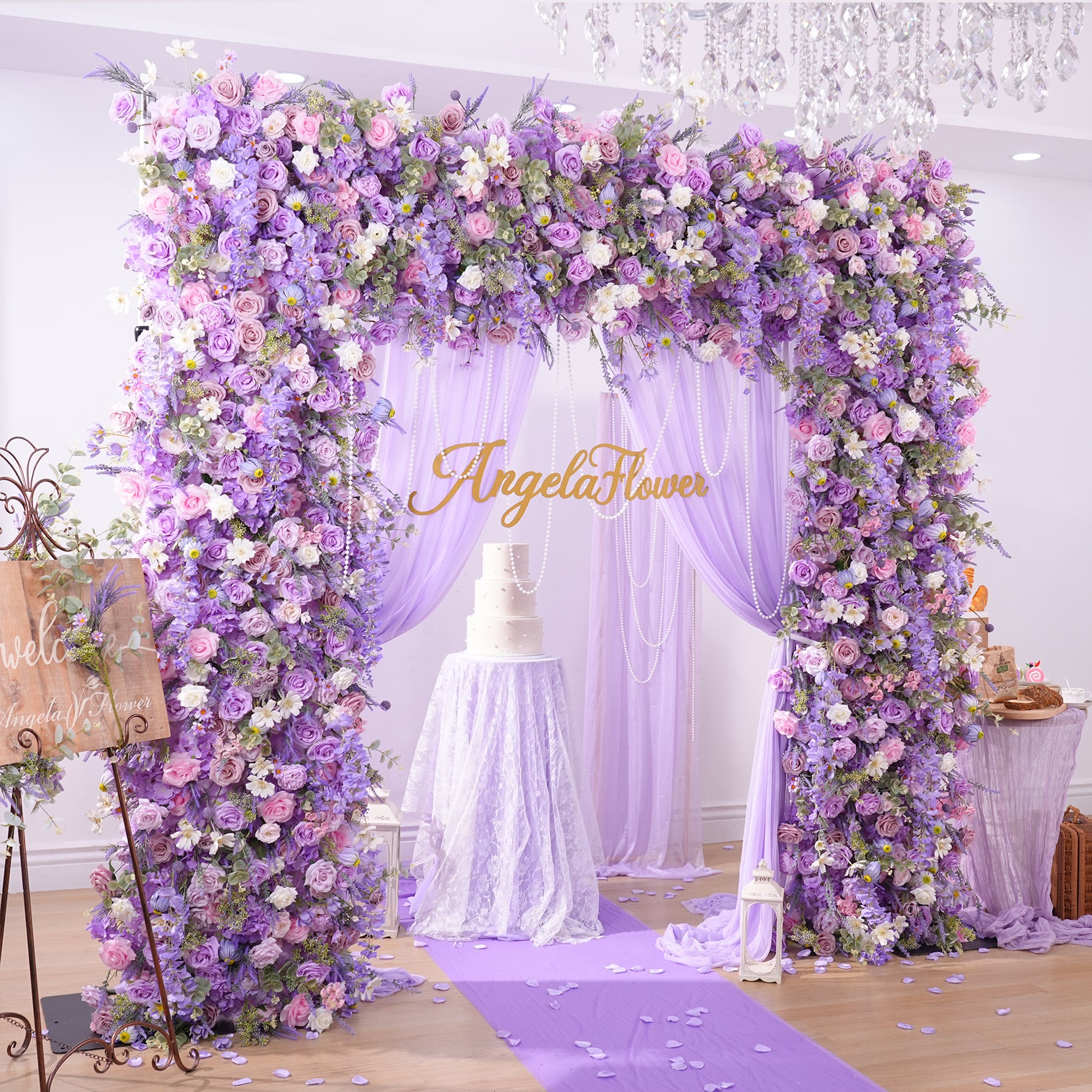 A8950 Purple Lavender Floral Row Cloth Base Square Arch Wedding Decor Props
