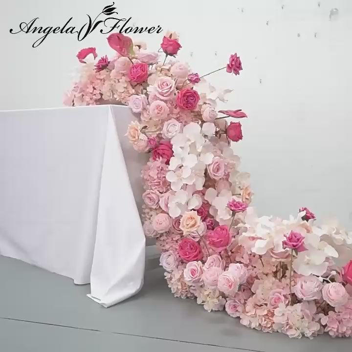 A7970 Wedding Decor Table Runner Pink Red Flower Row Strips Floral Arrangement