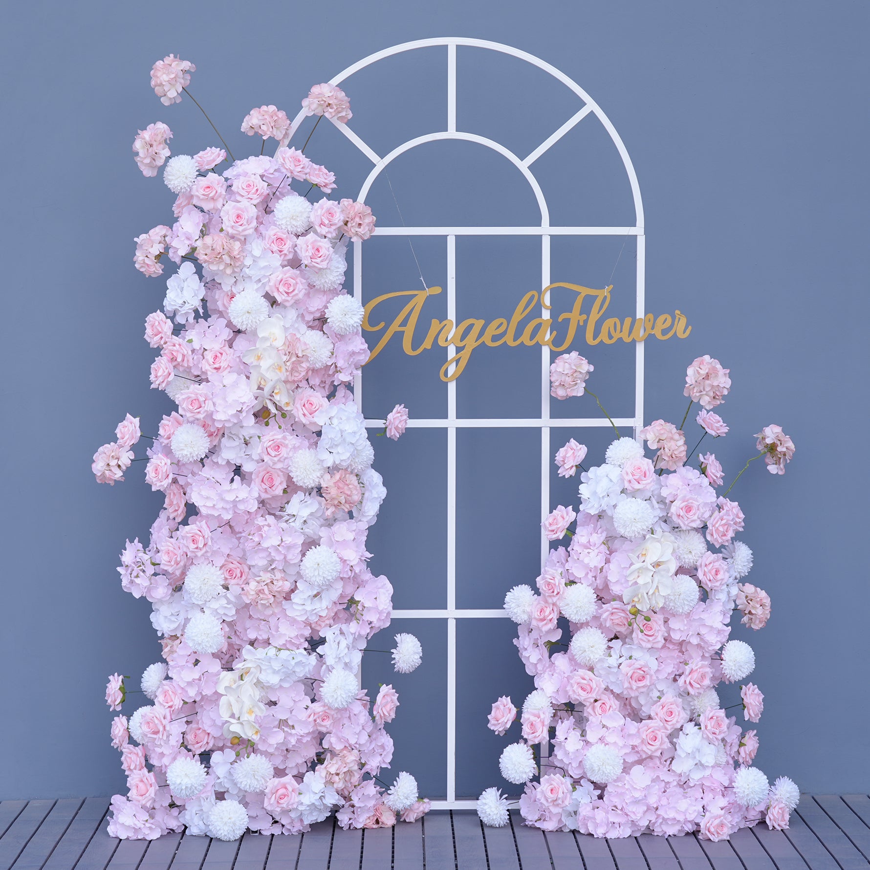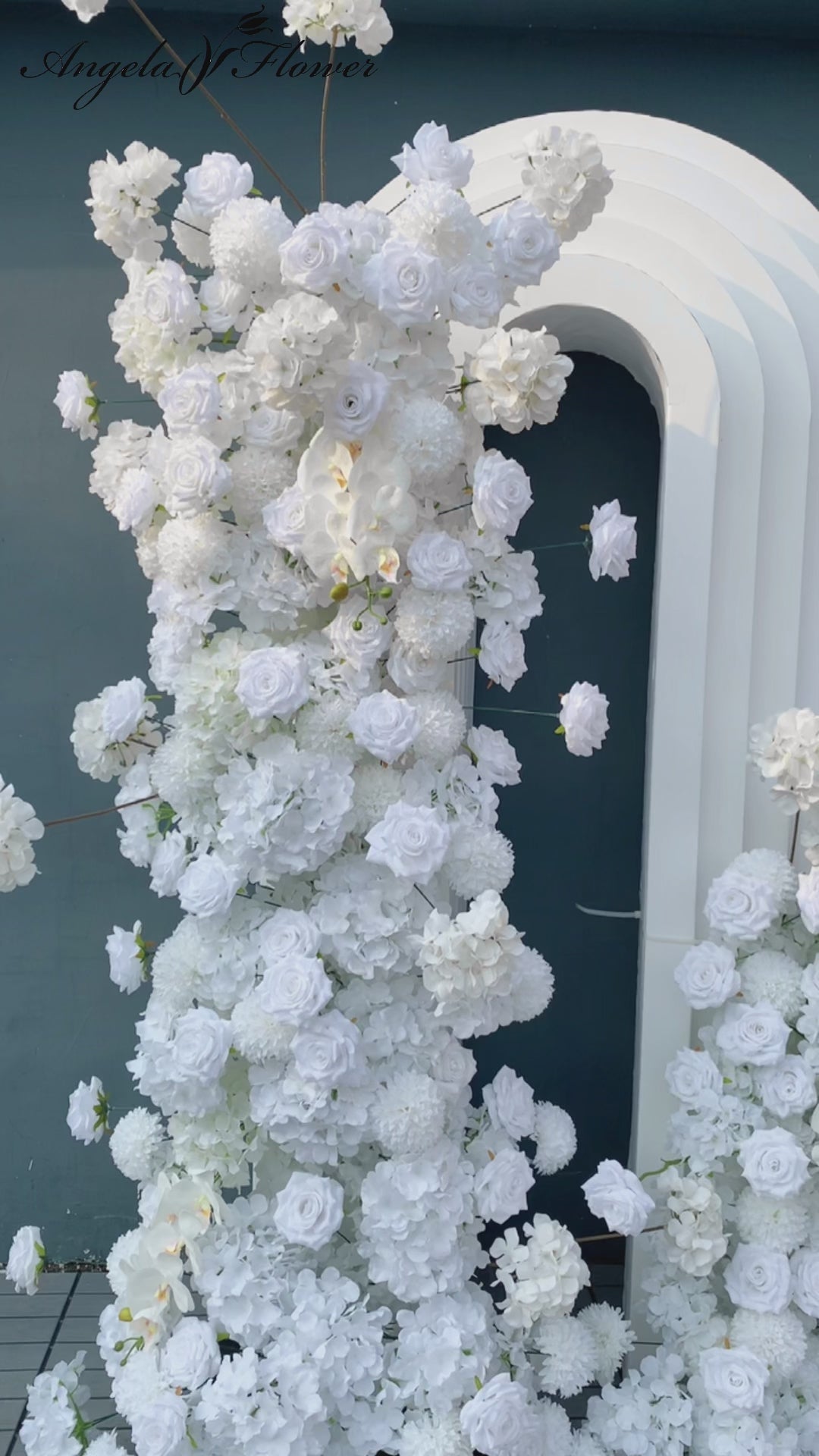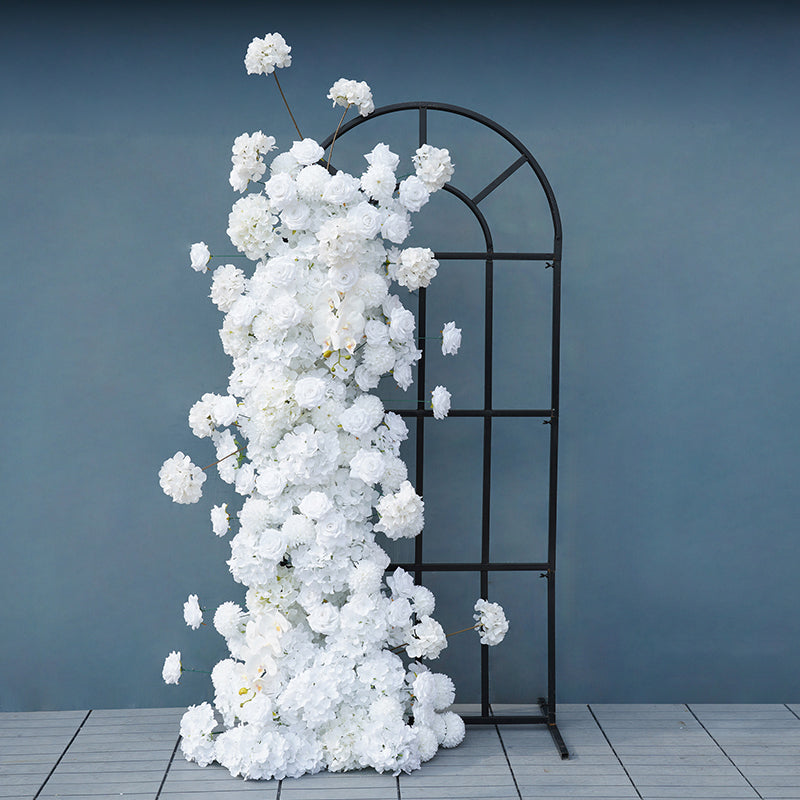 A7749 White Rose Orchid Pompoms Wedding Background Arch KT Board Decorative Flower Row