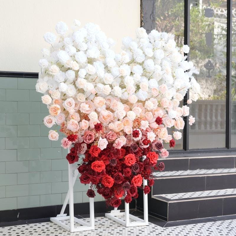 Color Inspiration: This Gradient 5D heart arch with white to red roses, capturing everlasting love. Witness the mesmerizing gradient, a symbol of pure love blossoming into passion. Crafted with ultra-realistic detail, these roses are unbelievably lifelike. Perfect for weddings, anniversaries, or adding romance.