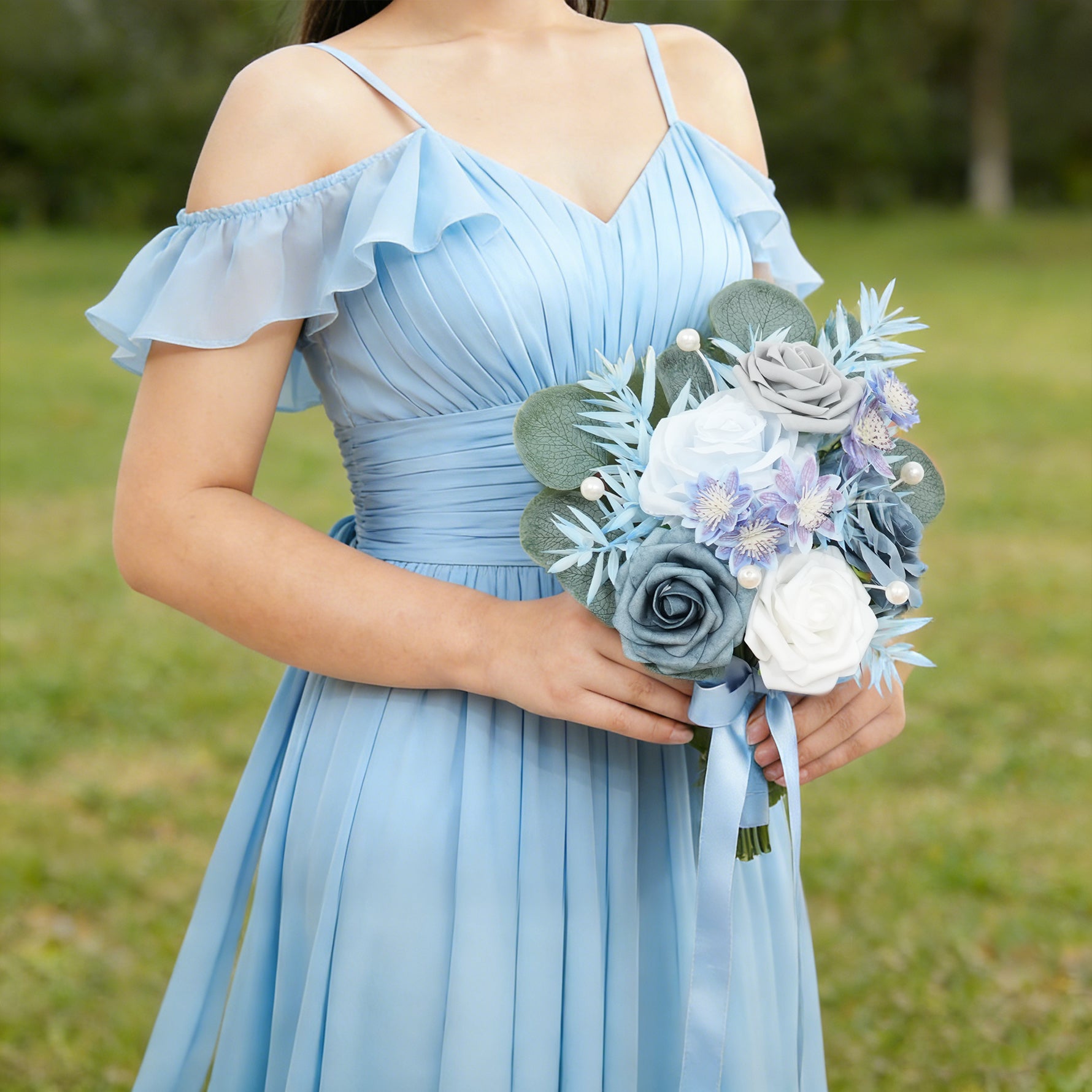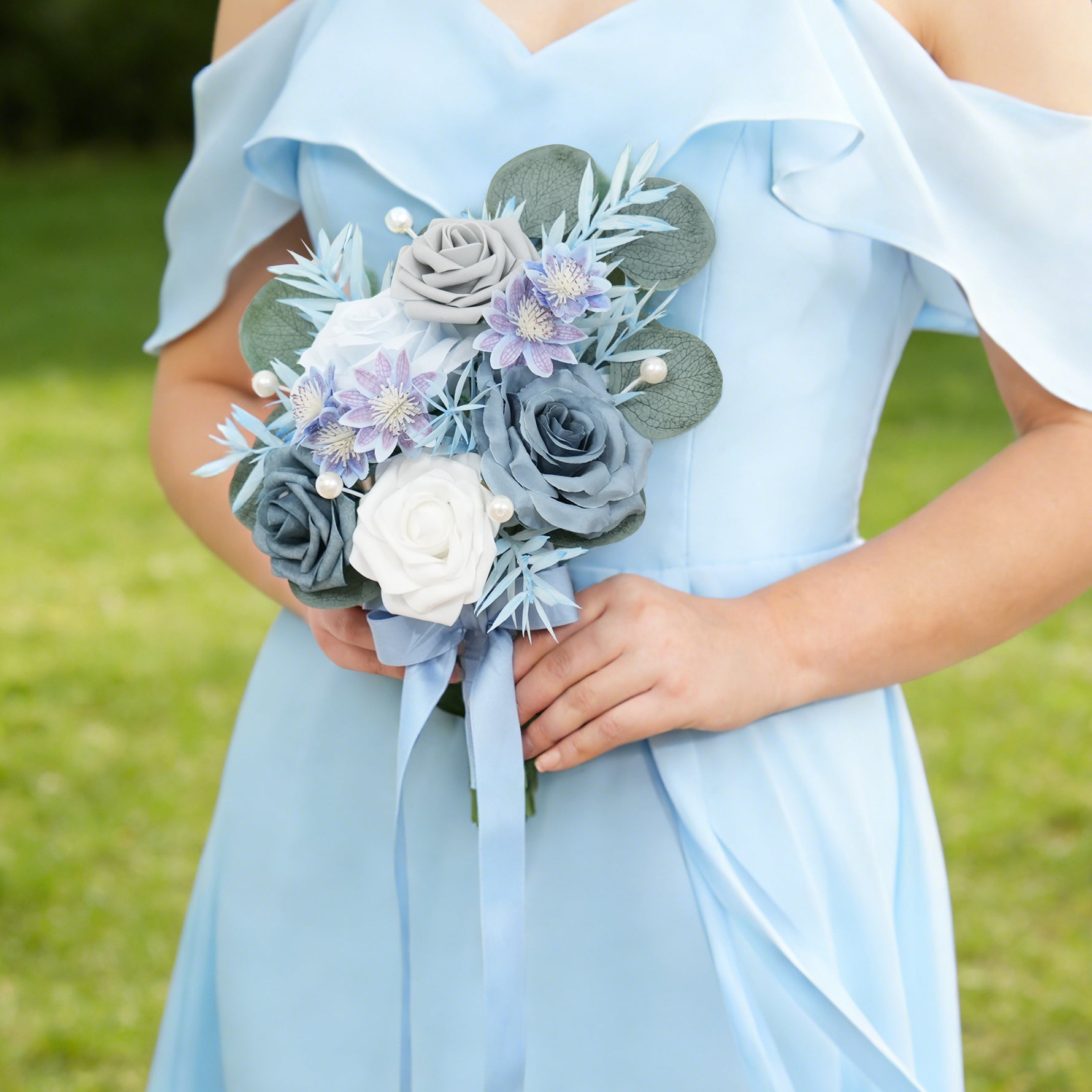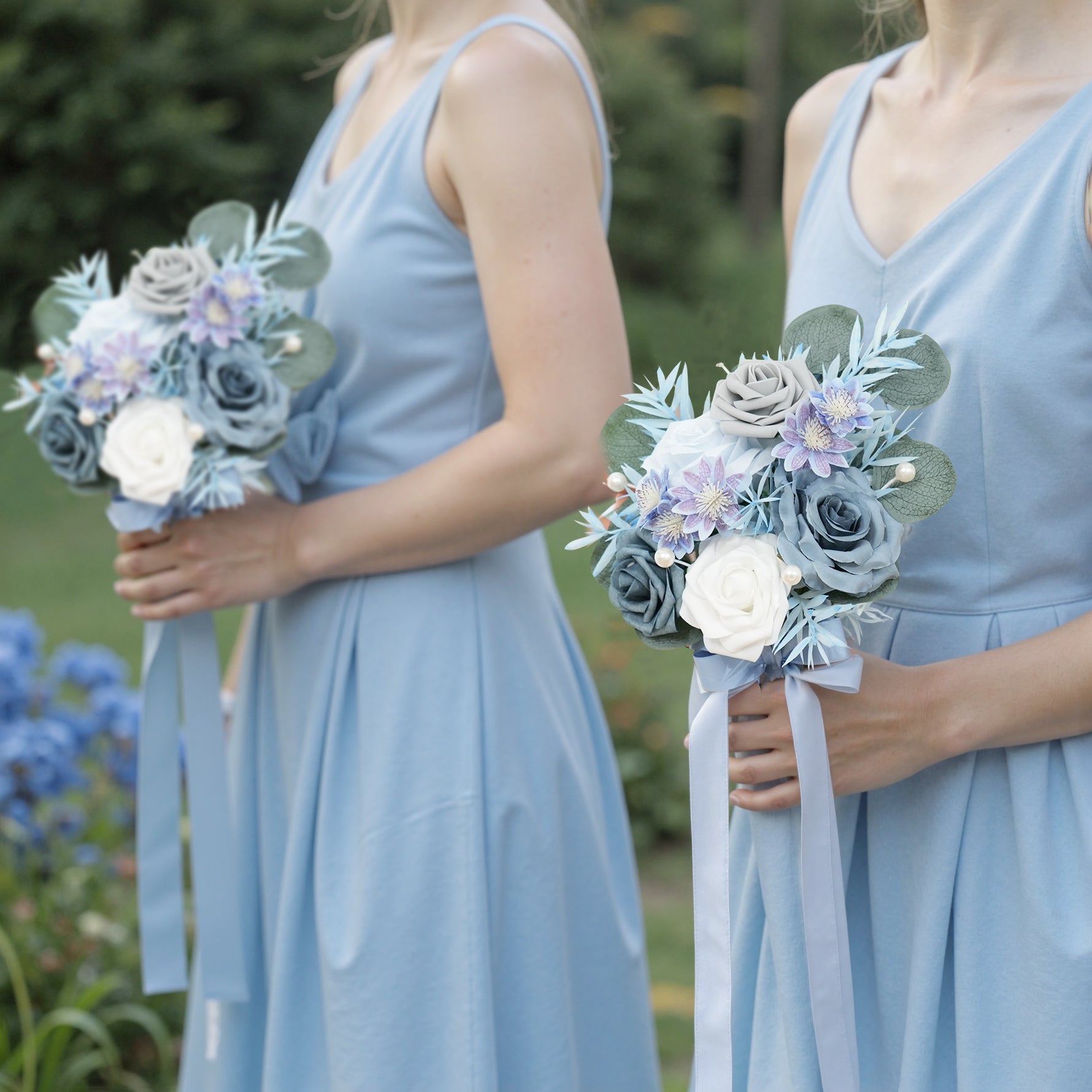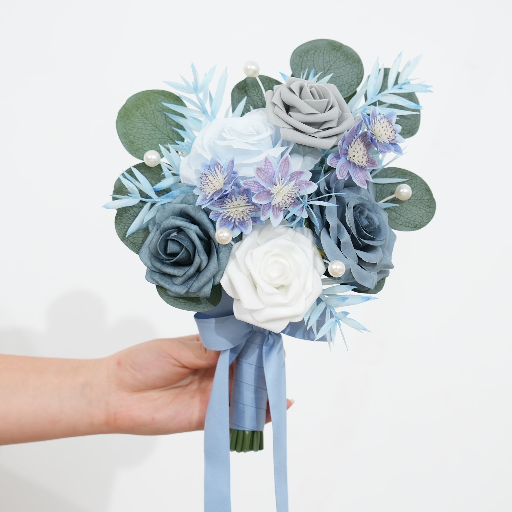 A9006 6pcs/set Haze Blue White Rose Bridesmaid Bouquet Wedding Party Accessories