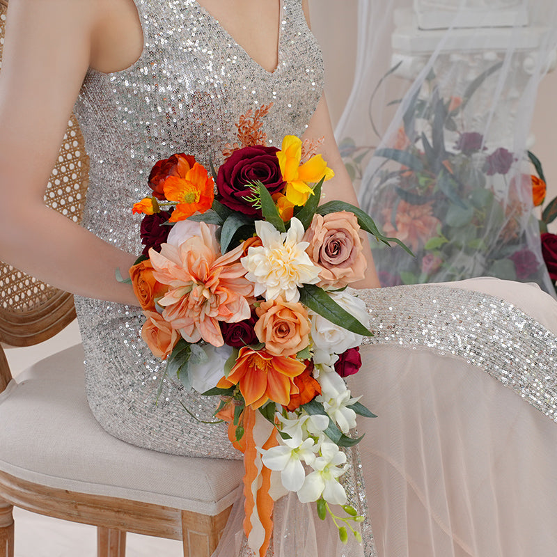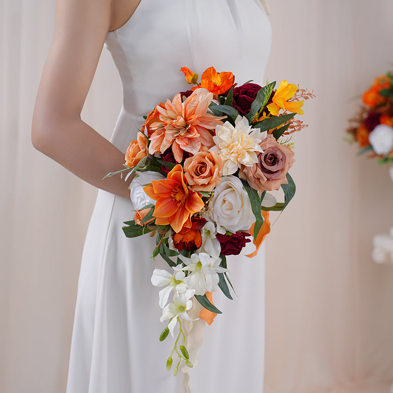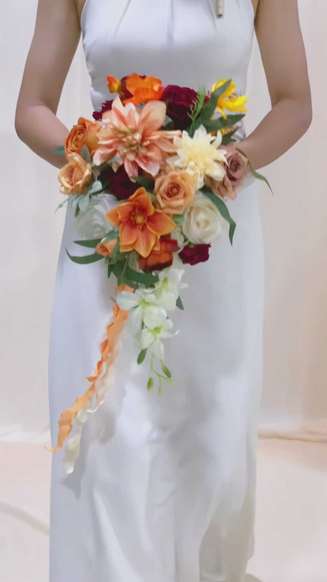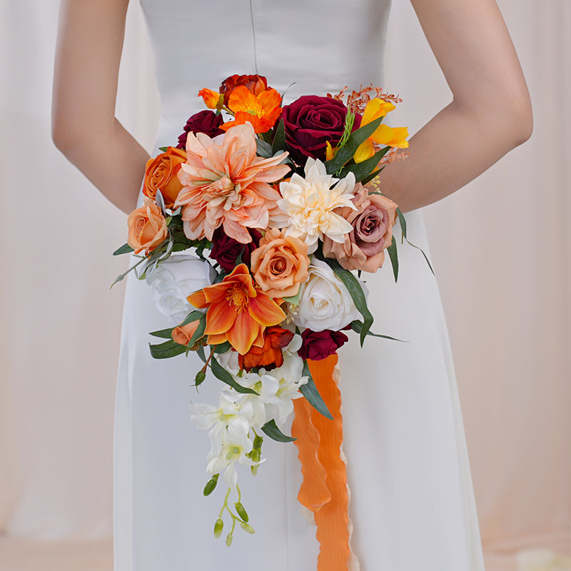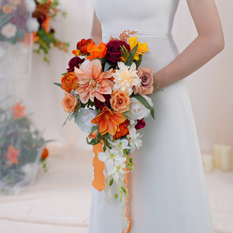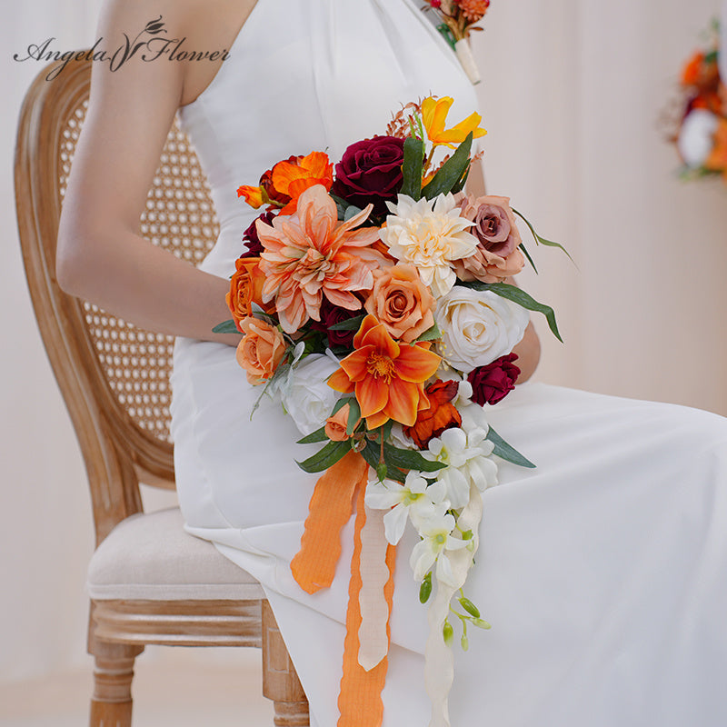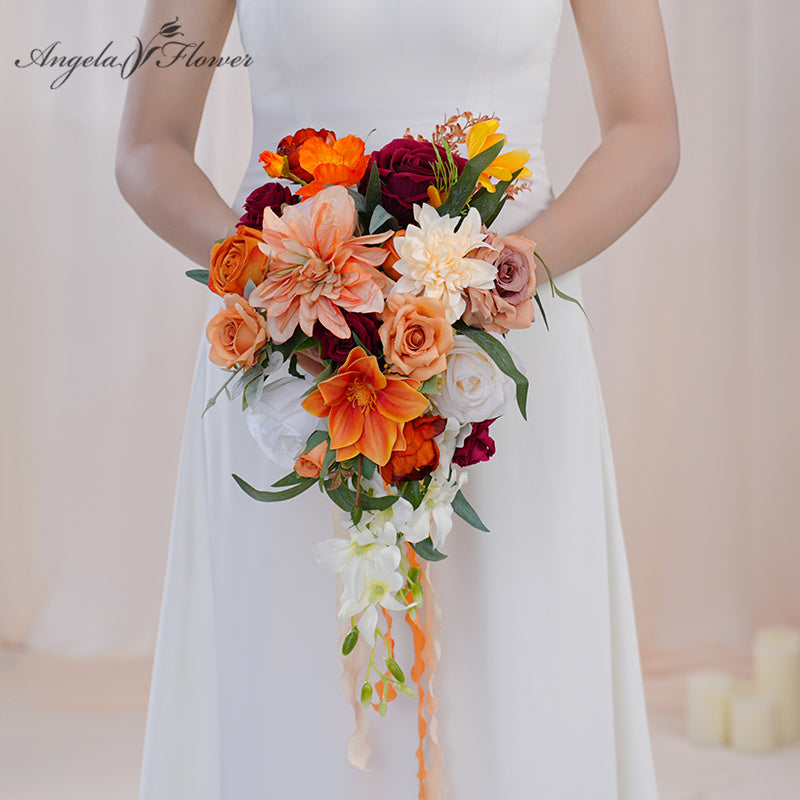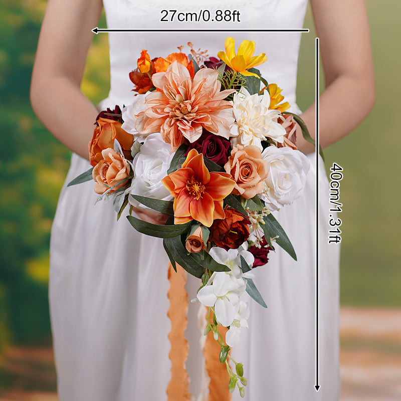 A863604 Autumn Series With Greenery Bridal Bouquet Wedding Hand Flowers