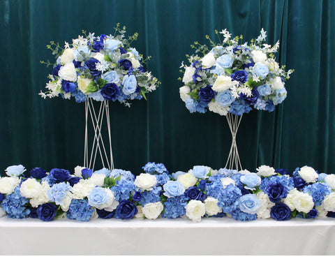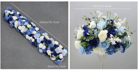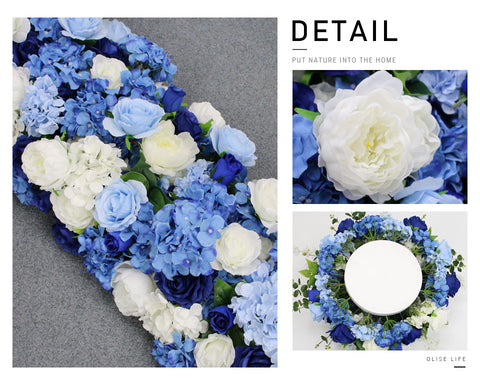 Errege Urdina Zuria Peonia Hortensia Artifiziala Lore Lerro Mahai Runners Festaren Ezkontza Atzeko Plana Zentroa Apaingarri Arrosa Lore Bola A4807