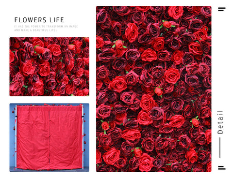 Gorria Burgundia Arrosa Roll Up Ehuna 5D Lore Horma Antolakuntza Ezkontza Atzeko Planoko Dekorazioa Zintzilikatutako Kurtina Berde Landareak Hormako Festetako Propak A6965