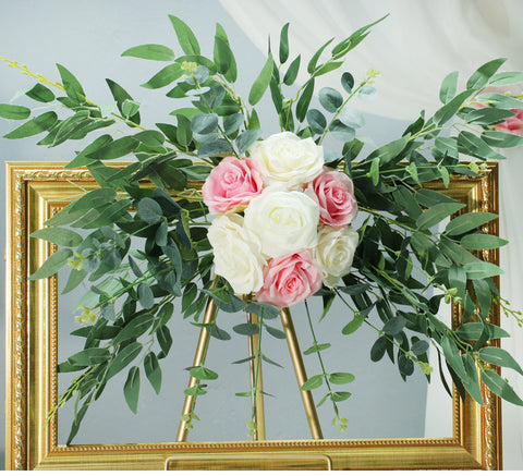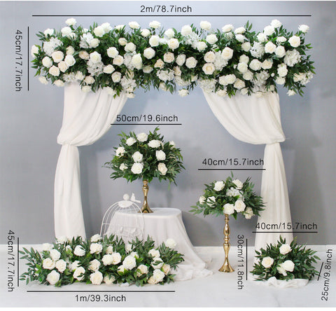 Luxuzko Arrosa Berde Landare Artifizialak Lore Ilara Ezkontza Arku Atzeko Dekorazioa Mahai Erdiko Pieza Lore Bola Festaren Bidea Liderra Loreak A7414 A7429