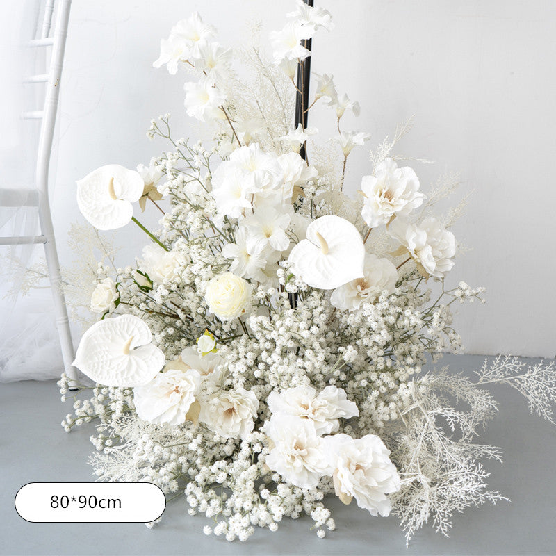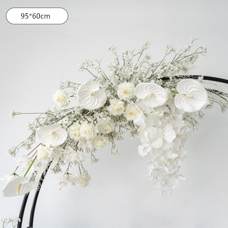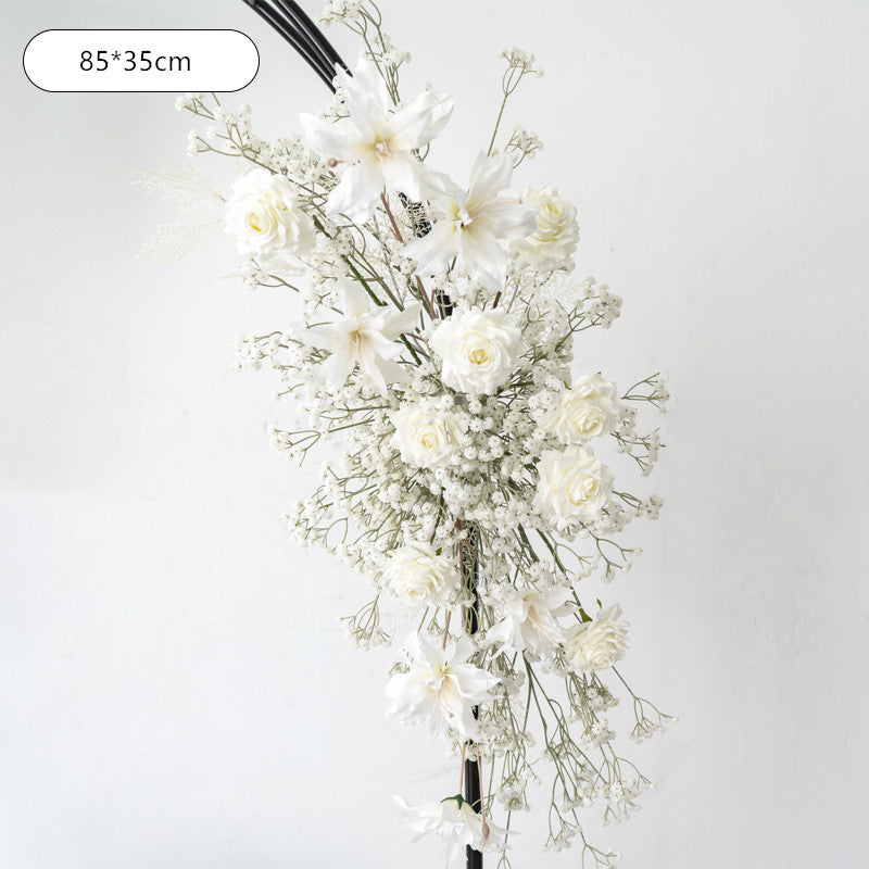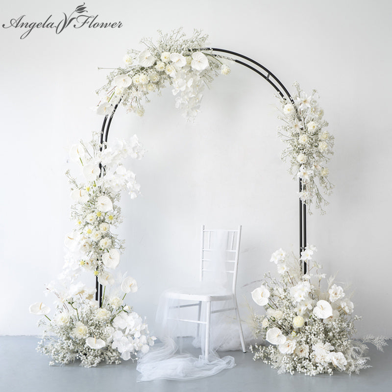 Ezkontza Zuria Atzeko Dekorazioa Haurren Arnasa Arrosa Palmako Arku Zintzurreko Loreen Ilara Antolaketa Lurreko Lore Bola Ekitaldi Festaren Eszenatoki Propak A7666 A9004