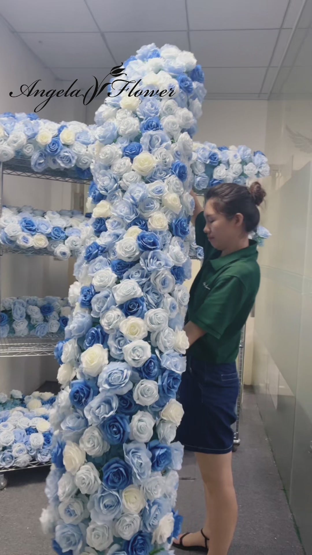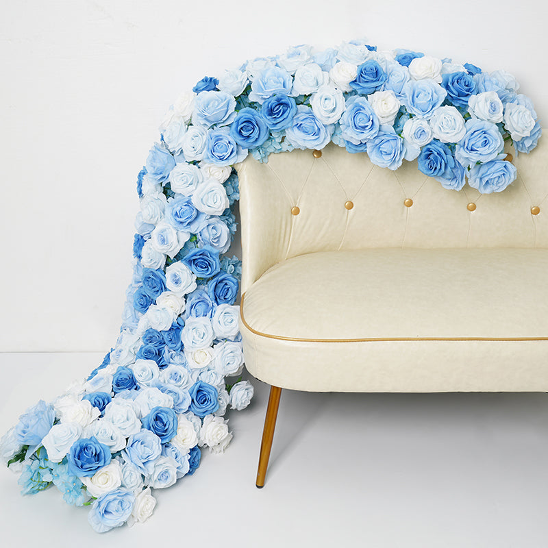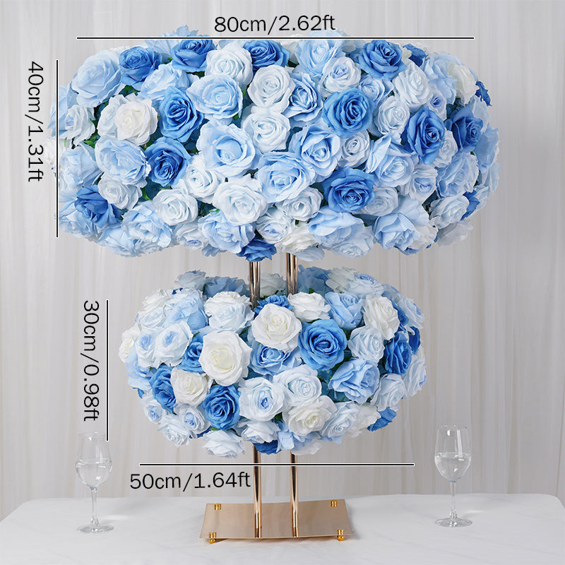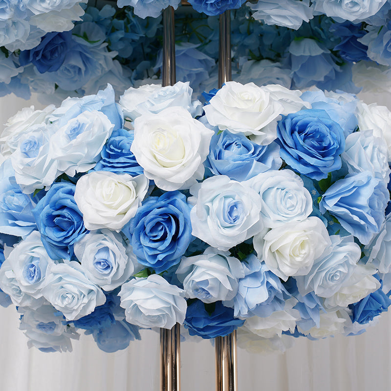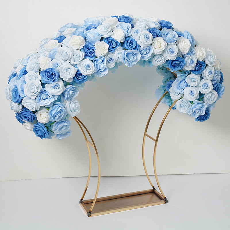 Angela Lore White Rose Urdin Tonu Lore Konposaketa Ezkontza Mahai Runa Lore Lerro Dekorazioa Urre Estalitako Zentroa A7754